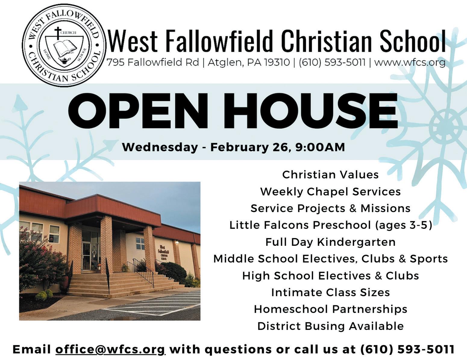 Serving An Extraordinary God.” Sunday Worship 9:30 a.m. (Children’s Service during Pastor’s Message). Wednesday Prayer Meeting at 6:30 p.m. We are located at 140 Bernard Ave., Cochranville. Pastor Scott Althouse 610-593-6333 fbchapel@zoominternet.net