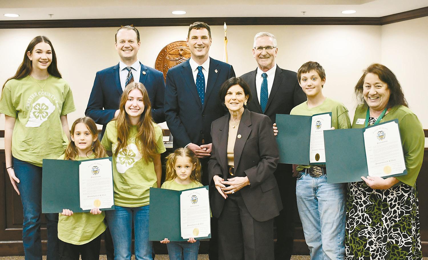 Chester County officials recognized Pennsylvania 4-H Week and National Agriculture Week during a recent Board of Commissioners meeting, highlighting the importance of youth leadership programs and the agricultural industry to the county and the commonwealth.