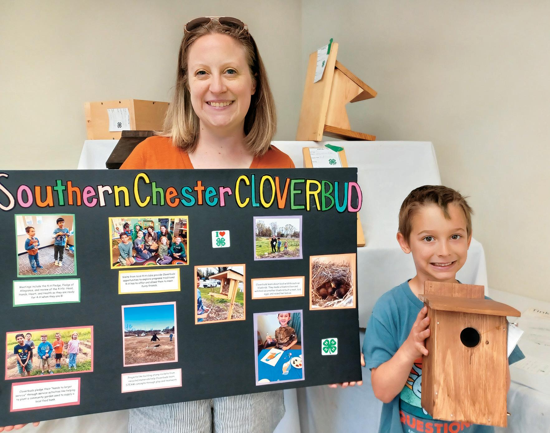 meetings. “Older club members will come to our meeting and introduce them to all that 4-H has to offer,” said Amanda, noting that the Cloverbuds also recite the 4-H Pledge. “Our local rabbit club came to one of our meetings and brought rabbits. We do a lot of STEM stuff and rocketry, and we built bluebird houses. In one bluebird house they got to watch the mama bird build a nest and watch the eggs hatch.”