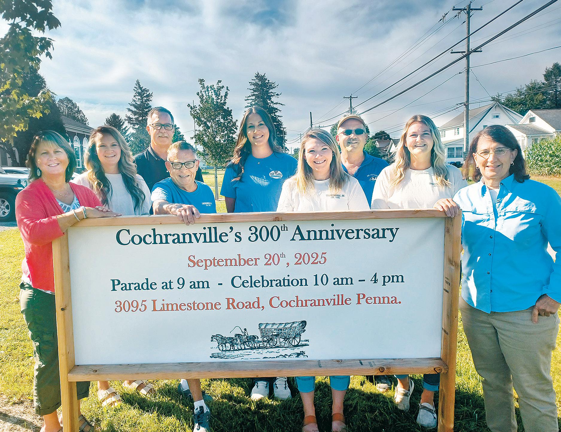 Cochranville will commemorate its 300th anniversary with a community celebration on Saturday, Sept. 20. Events will include a parade, family activities, food, live music and historical presentations.