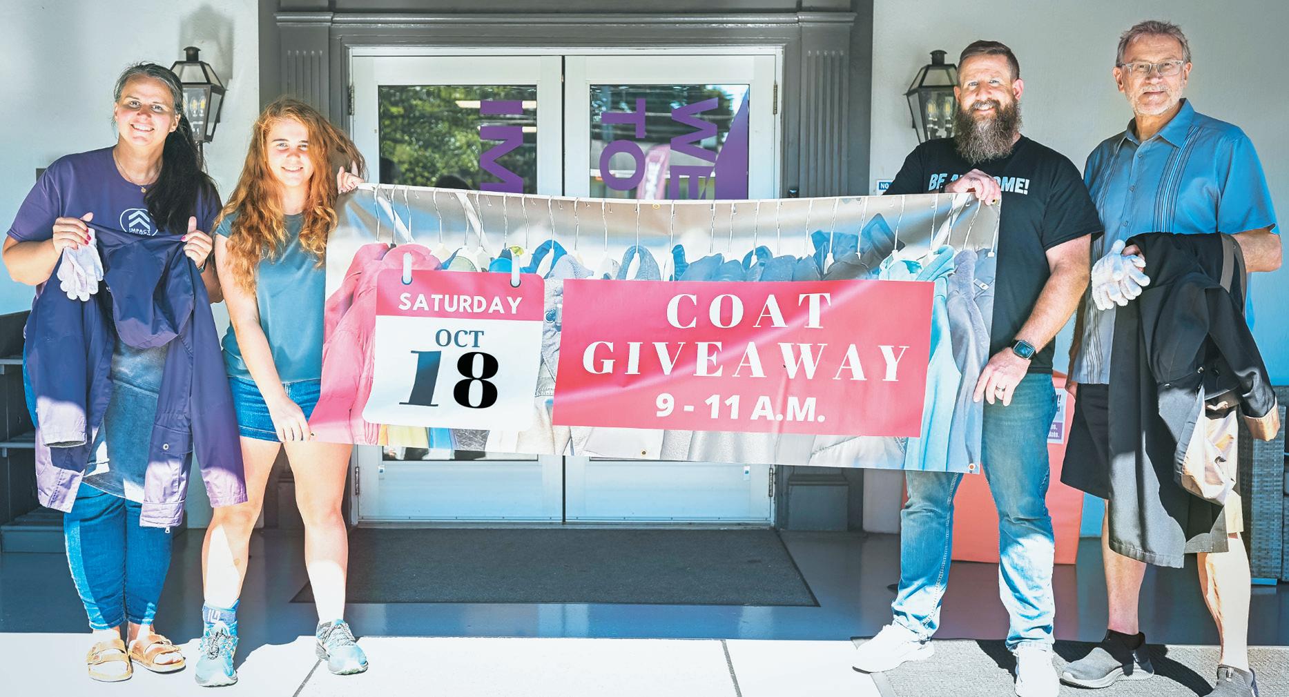 Coats and winter gear are being given out at IMPACT Church, represented by (from left) Lisa Blank, Roxy Bailey, pastor Mike Bailey and Ron Richmond.