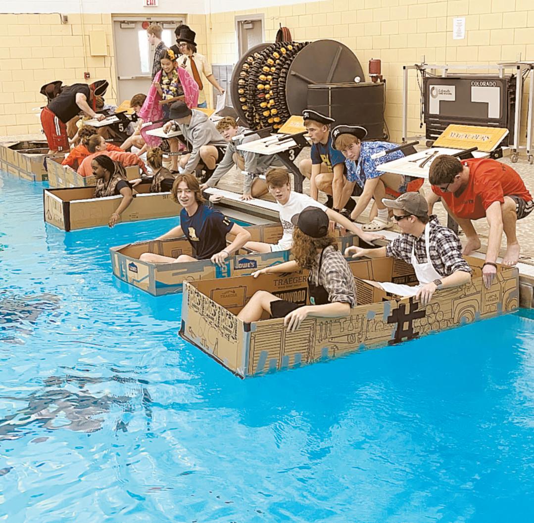 team of students was tasked with designing its own boat made almost entirely from cardboard. Students had to apply what Peace taught them about buoyancy force to calculate how high the water would rise and predict how much mass the boat would hold. Students’ main objective was to ride their boats from one end to the other while paddling with their hands. “It’s good experience for the kids in engineering, design and application,” said Peace. “We had a high rate of