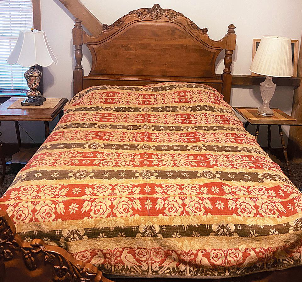 The Heritage Center features exhibits and displays of the local area with a focus on native indigenous people who once inhabited the immediate area. It is located in a renovated 1832 stone grist mill that was constructed by Jacob Witmer. A recent acquisition to the displays is a coverlet made by Jacob Witmer, which is signed and dated 1838. The coverlet was woven on a home loom, which was common during the period. Another new item is a board with the date 1807 and carved name of W.M. Lewis. This board was found in the barn, and the signature has been identified as that of William M. Lewis, who married Jacob Witmer’s daughter, Catherine.