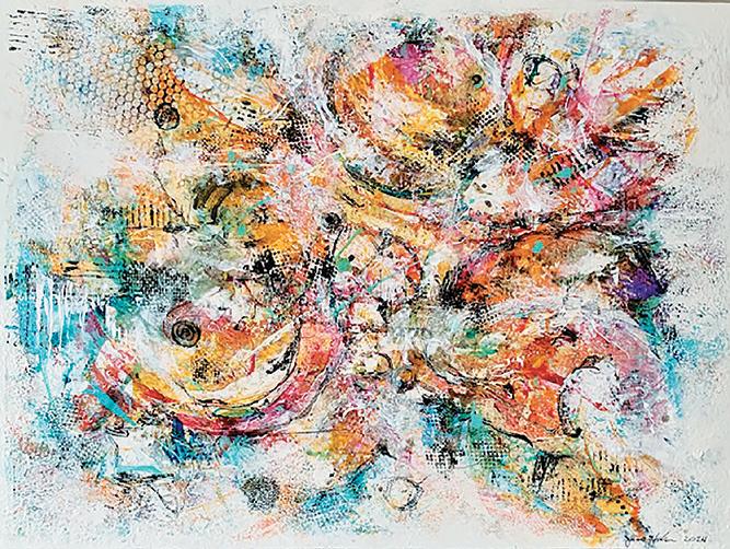 the last 10 years. Each piece incorporates a heavy emphasis on texture, which Hecker explores through his work using plaster, oil paint and acrylic paint. “It will probably look like 10 different artists have work in that space because I get bored,” Hecker said. “I like to try different styles, and I’m always trying something new.”
