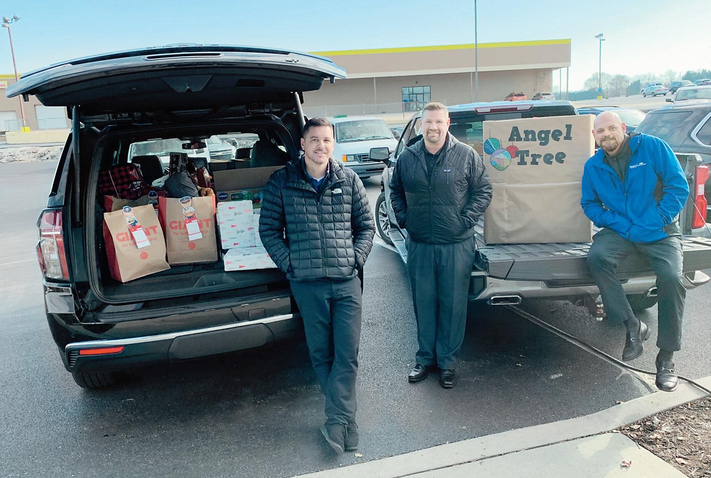 Faulkner Chevrolet employees (from left) Chris Chapman, Chad Berger and Mario Amato display some of the donations.