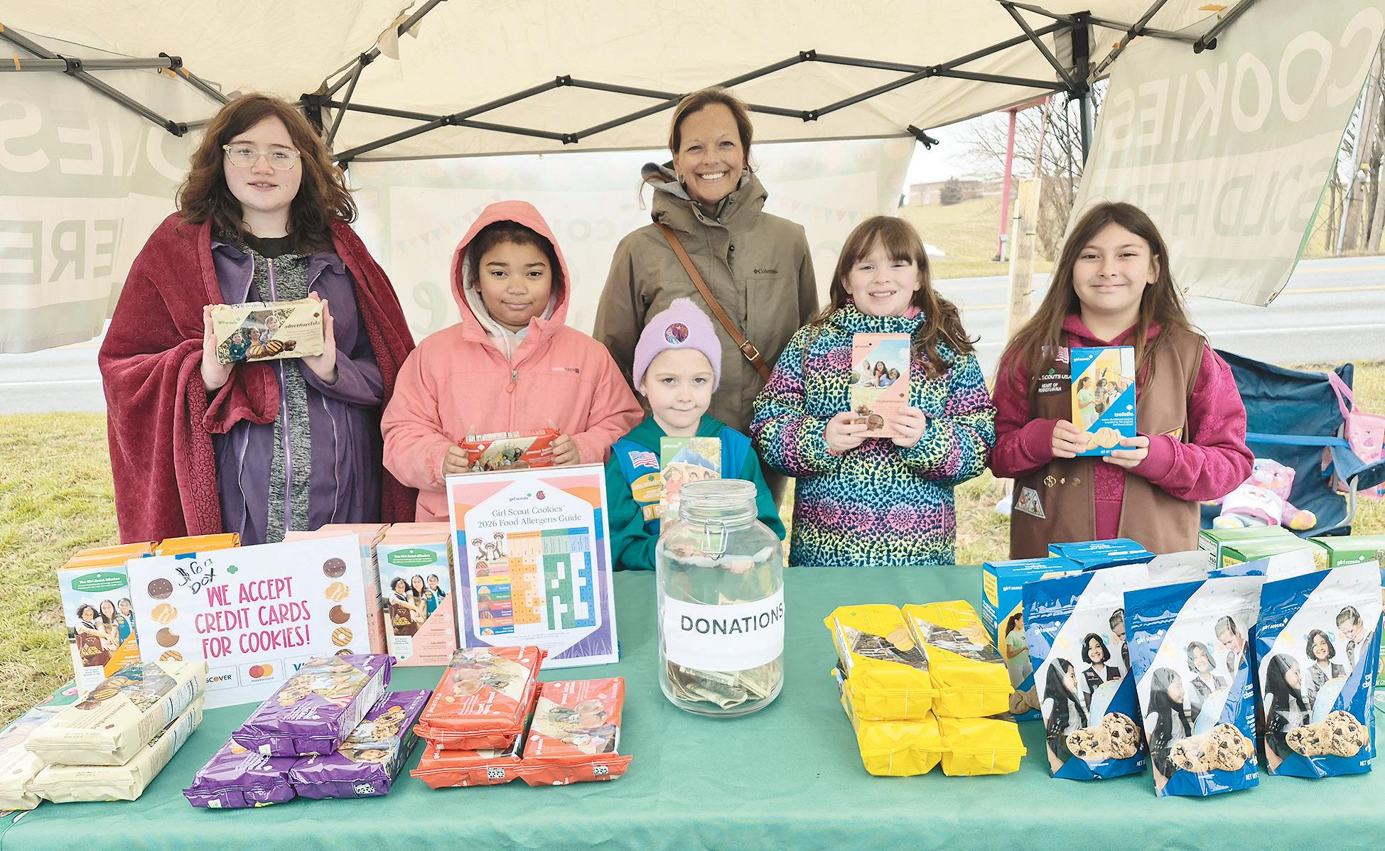 Peanut butter varieties are Peanut Butter Patties dipped in chocolate and the Peanut Butter Sandwich, which is an oatmeal cookie with a peanut butter filling. Selling cookies recently at the Paradise Township Building were members of Pequea Valley Troop 70520, along with troop co-leaders Candace Wines and Katie Knaub, who reported that Thin Mints were the most popular selling cookies. “We have sold more of them today than another other cookie,” noted Wines.