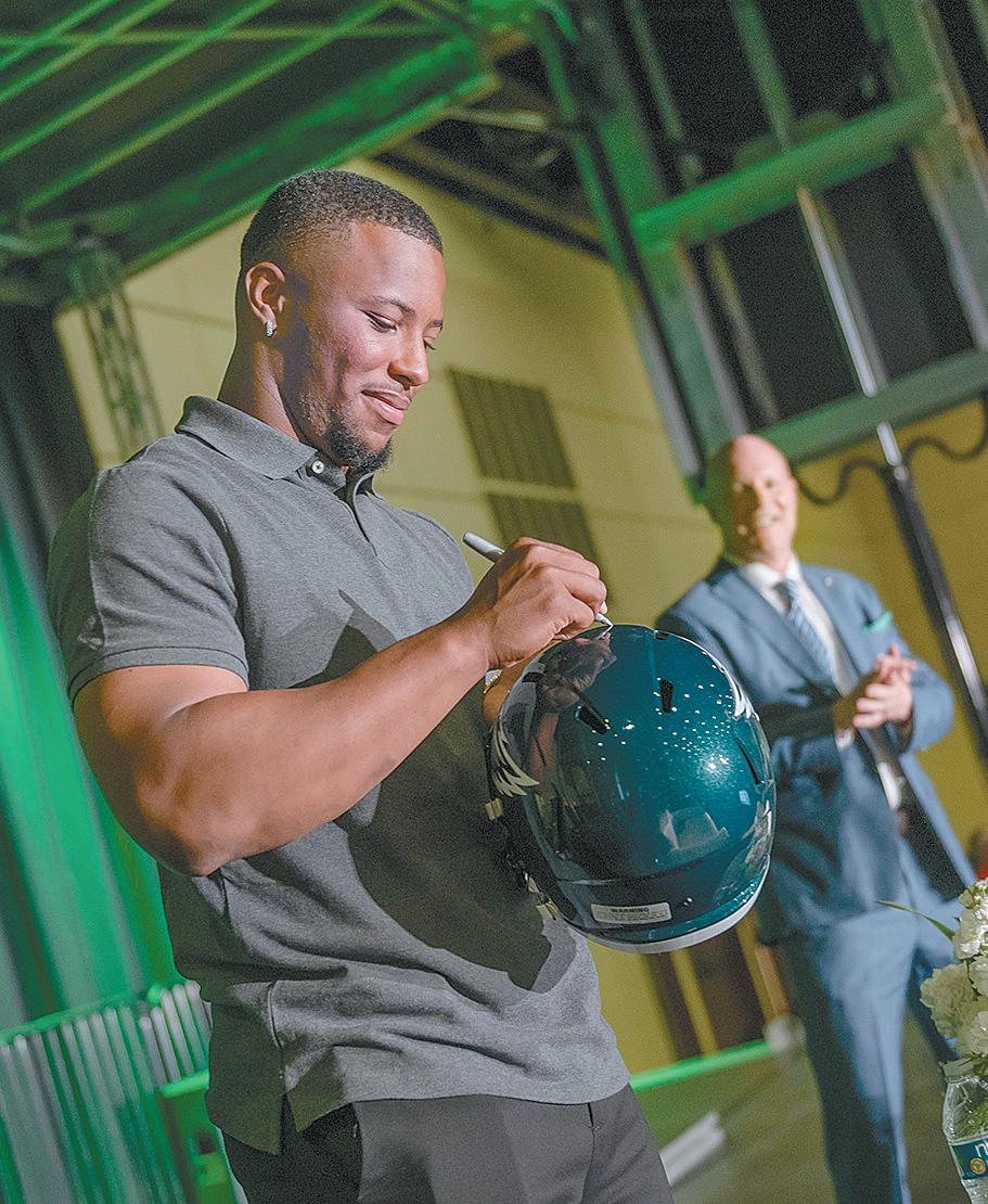 Barkley also signed a football, a helmet and a jersey for the live auction.