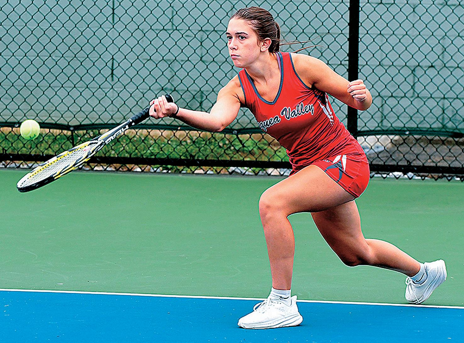 Pequea Valley’s Makenna Fritz (top) and Liv Hofstetter (bottom) drop a tough match against Annville-Cleona as the No. 1 doubles team on Monday, September 15.