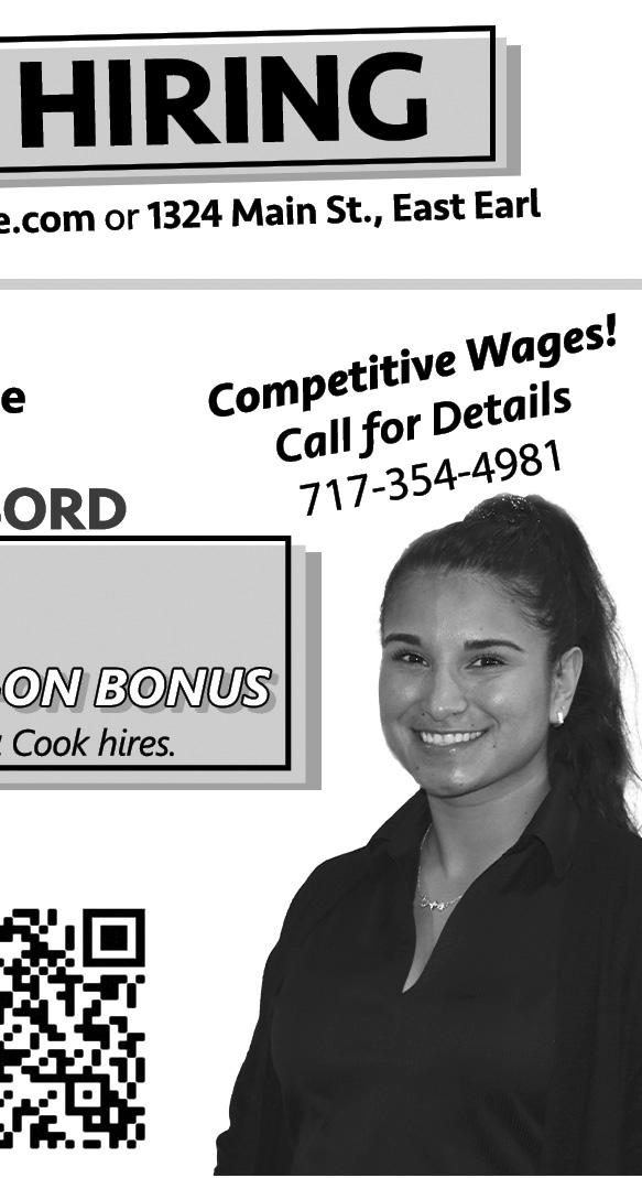 PENNYSAVER - Pequea Valley Edition - December 14, 2022- 15 townlively.com R090027 Seeking an experienced technician to join our growing service team. Responsible for installing and maintaining a wide variety of equipment at our multiple locations around Lancaster County. Ideal candidate has 5+ years experience in commercial mechanical, electrical or HVAC industry. This is a unique growth opportunity for the right person. NOW HIRING Full-Time Service Technician Want more variety from your job? JOIN OUR TEAM! Local family-owned business since 1972. Focused on QUALITY & INTEGRITY • Competitive Wages/Benefits • Company Paid Health Care • Paid Vacation & Holidays 717-355-7118 • Apply at www.SunDanceWash.com • Company Matched Retirement Plan • Company Vehicle R091064 MIXER DRIVER Rohrer’s needs drivers to deliver ready-mix concrete to our customers at various job sites, mainly in Lancaster and Southern Lebanon Counties. We dispatch concrete trucks from our Lititz and Jonestown locations. Candidates must have a safe driving record; stable employment history; be able to lift 75 lbs., work outside in all kinds of weather; in dusty & muddy conditions; routinely climb truck ladders, and be available for regular overtime. You need to have or be able to obtain a CDL class B license – we’re willing to train! We offer competitive pay and benefits including health, dental, vision, disability, life insurance,
