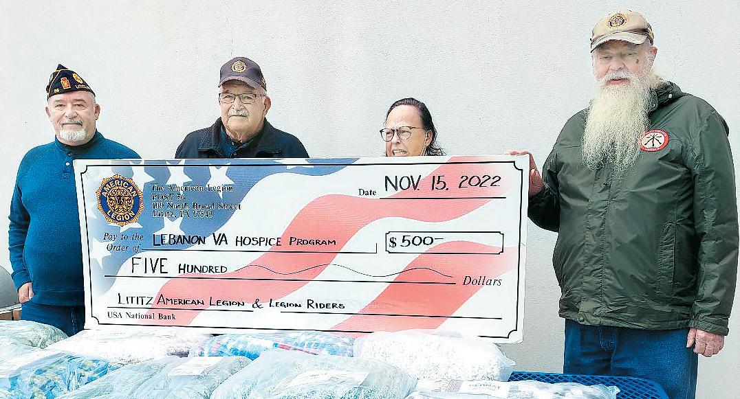 American Legion Garden Spot Post 56, located in Lititz, and the post’s American Legion Riders (ALR) presented a check for $500 to the Hospice Unit at the Lebanon VA Medical Center (VAMC). The funds will go toward fulfilling any wishes the veterans may have.