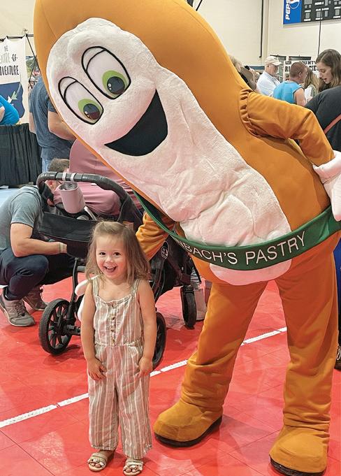 A little girl meets the Achenbach Pastries mascot at last year’s PA Family Travel Fair.