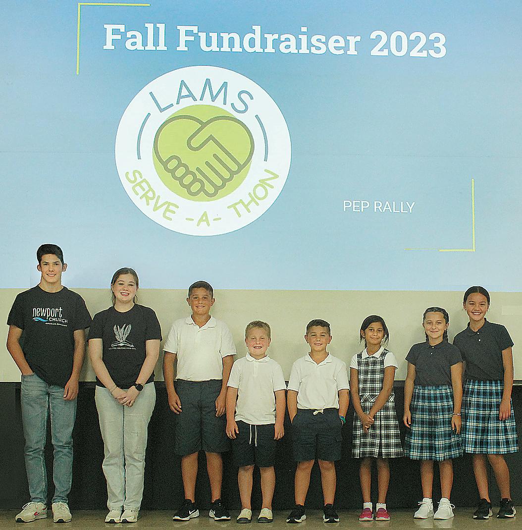 Gearing up for this year’s Serve-A-Thon are LAMS students (from left) David Stoltzfus, Danica Hess, Grady Auker, Brecken Smith, Jace Auker, Ethne Petersheim, Emma Zimmerman and Maggie Jackson.