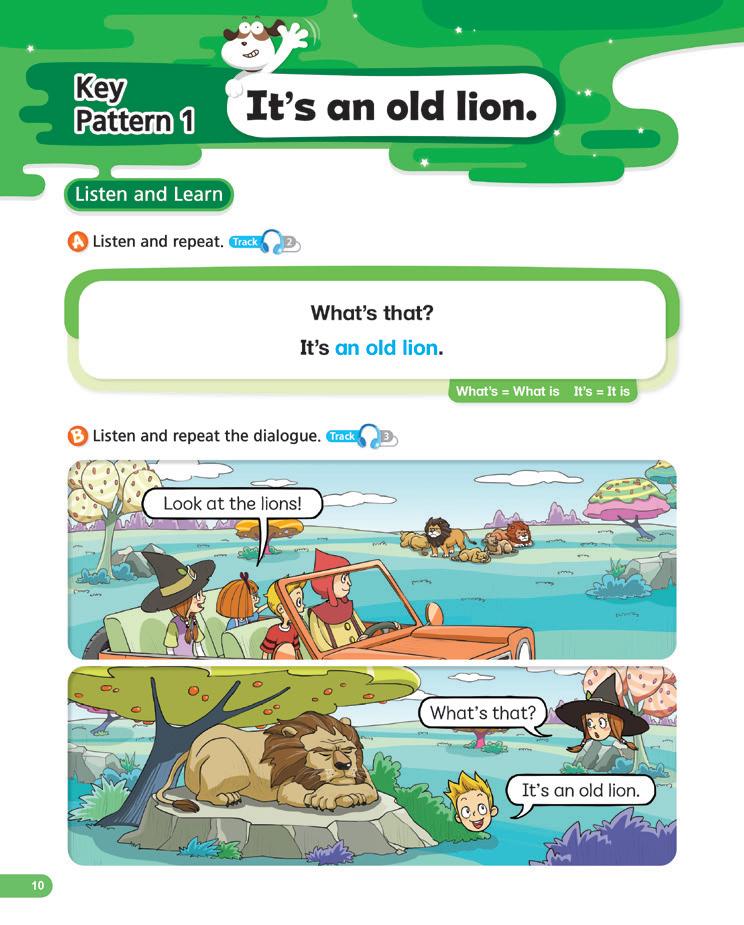 Unit 7 This is mine. Lesson 1 Key Pattern 1 It’s Joey’s dog. 94 Lesson 2 Key Pattern 2 It has a big mouth. 98 Lesson 3 Useful Expression This is mine. 102 Lesson 4 Review Whose Pet? 104 Unit 9 How do I look? Lesson 1 Key Pattern 1 She’s wearing a dress. 122 Lesson 2 Key Pattern 2 Are they wearing boots? 126 Lesson 3 Useful Expression How do I look? 130 Lesson 4 Review Jack and Olivia’s Dance 132 Unit 6 No, thank you. She has a paintbrush. 80 Lesson 2 Key Pattern 2 Does he have a flashlight? 84 Lesson 3 Useful Expression No, thank you. 88 Lesson 4 Review Cake for Jack 90 Unit 8 Can I have some water? Lesson 1 Key Pattern 1 He’s talking. 108 Lesson 2 Key Pattern 2 Are they sleeping? 112 Lesson 3 Useful Expression Can I have some water? 116 Lesson 4 Review Sweet’s Students 118 Unit 10 I’m sorry I’m late. Lesson 1 Key Pattern 1 She’s at home. 136 Lesson 2 Key Pattern 2 Where is he going? 140 Lesson 3 Useful Expression I’m sorry I’m late. 144 Lesson 4 Review Jack Is Late! 146