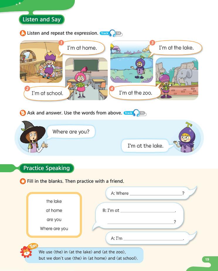 Key Words, Key Patterns, and Useful Expressions are selected from elementary English curriculum so children can master elementary level speaking.