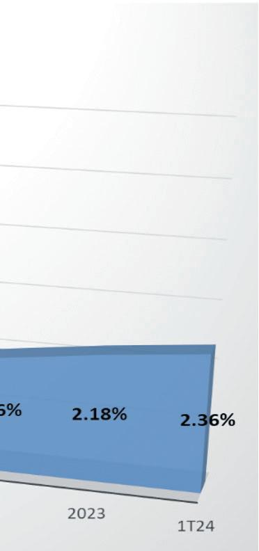 los últimos cinco años, siendo el cierre del 2024 el mas bajo en dicho período. El cierre del 2023 fue 5%.