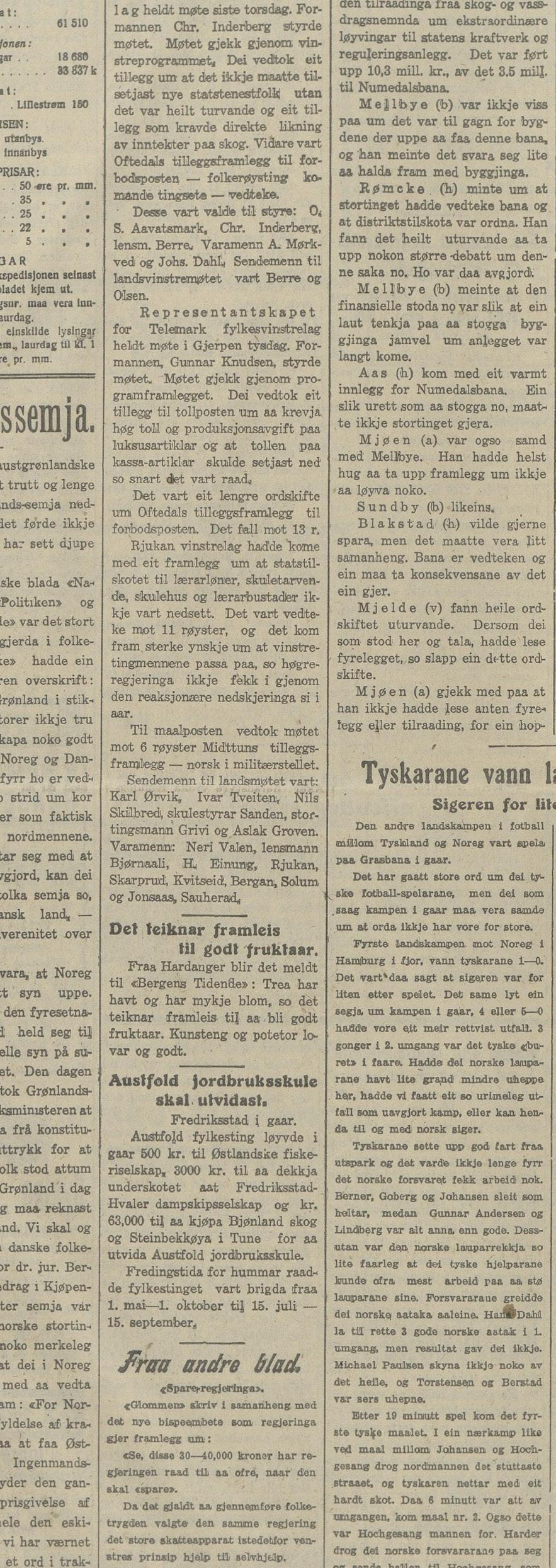 Von einer angespannten Stimmung bemerkt man in den beiden Berichten in unserem Gemeindebrief allerdings nichts — oder man wollte es nicht erwähnen, um ein durchweg positives Bild zu vermitteln. Die Wahrheit wird wohl irgendwo dazwischen liegen, wenn wir davon lesen, dass die deutschen Spieler nach ihrer 28–stündigen Zugfahrt zusammen mit der norwegischen Mannschaft und Gästen sowie Vertretern der Gemeinde und deutschen Vereinen zunächst zu einem Empfang beim deutschen Gesandten geladen waren. Doch damit endete das Begegnungsprogramm nicht, denn am nächsten Tag nach dem Spiel luden die Norweger zum Mittagessen in das — damals noch recht neue — Hotel Bristol ein. Anschließend organisierte die Sportabteilung „Espe“ des Deutschen Vereins die Besichtigung des Ski–Museums. Das war zu diesem Zeitpunkt kaum ein Jahr alt und befand sich noch in Frognerseteren. Zum Abschluss ging es zum Abendbrot in die
