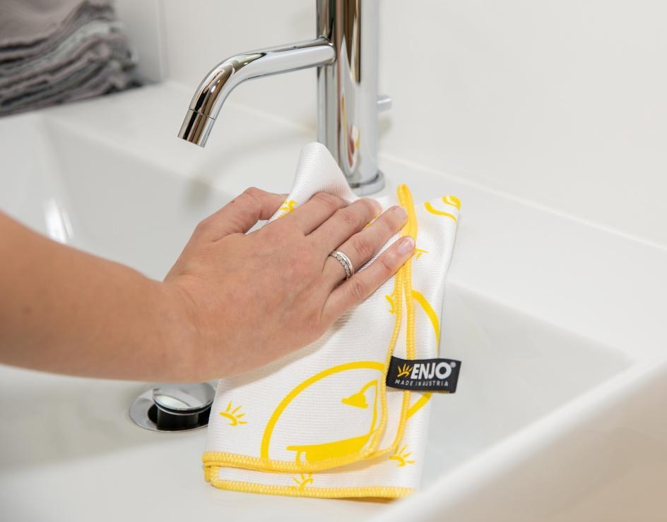 Hansgrohe® raccomanda ENJO per la pulizia di bagni e sanitari. Ciò che li ha convinti è la lunga durata delle fibre e il livello di pulizia igienica ottenuti.