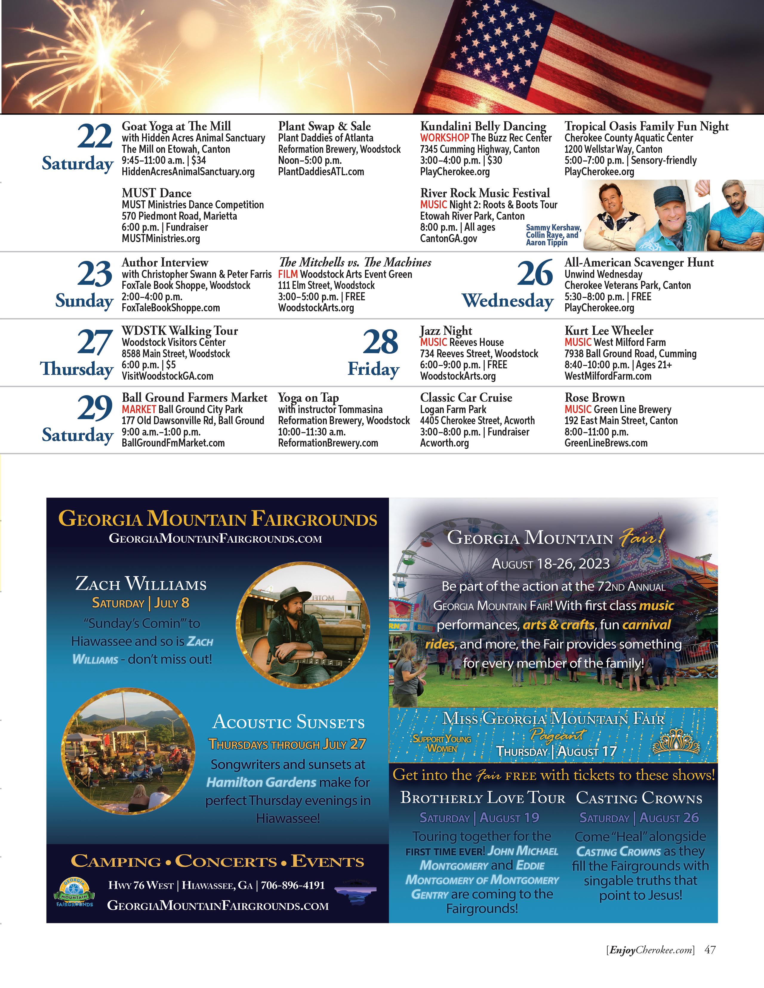 Copyright 2023 by Enjoy Magazine Inc. (EMI). All rights reserved. Every effort is made to ensure the contents of this publication are true and accurate. EMI assumes no responsibility for misinformation. Correction requests are always welcome at SimplyTheBest@EnjoyCherokee.com. Reproduction in whole, or in part, without permission of Enjoy Magazine, Inc. is strictly prohibited.