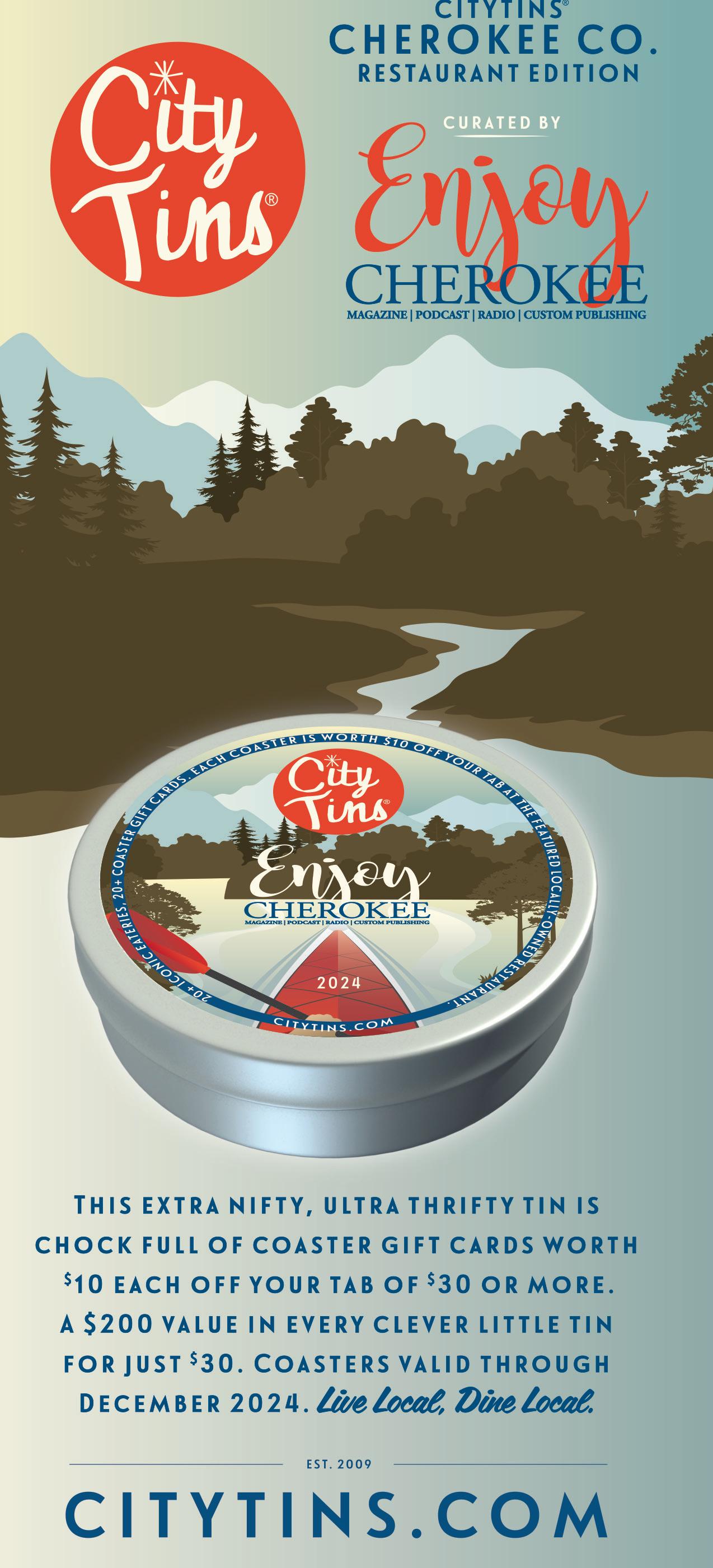 $30 FOR THE TIN $10 GIFT CARD AT EACH RESTAURANT * ON SALE THIS FALL *When you spend $30 or more WOODSTOCK BALL GROUND CANTON Small businesses looking for a successful way to market— Contact Enjoy Cherokee TODAY! SimplyTheBest@EnjoyCherokee.com | (678) 454-9552