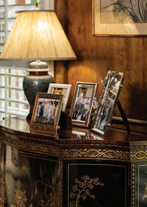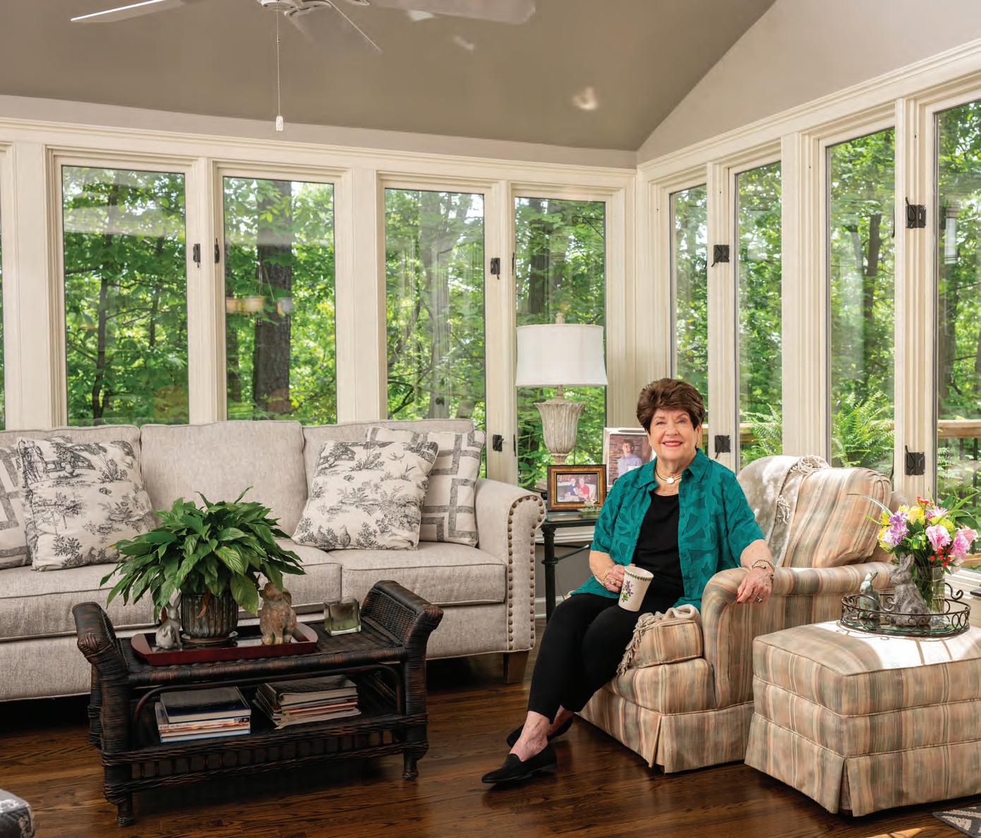 The Roach home is decorated with an appealing blend of traditional furnishings and fabrics. The kitchen opens into a beautiful sunroom.