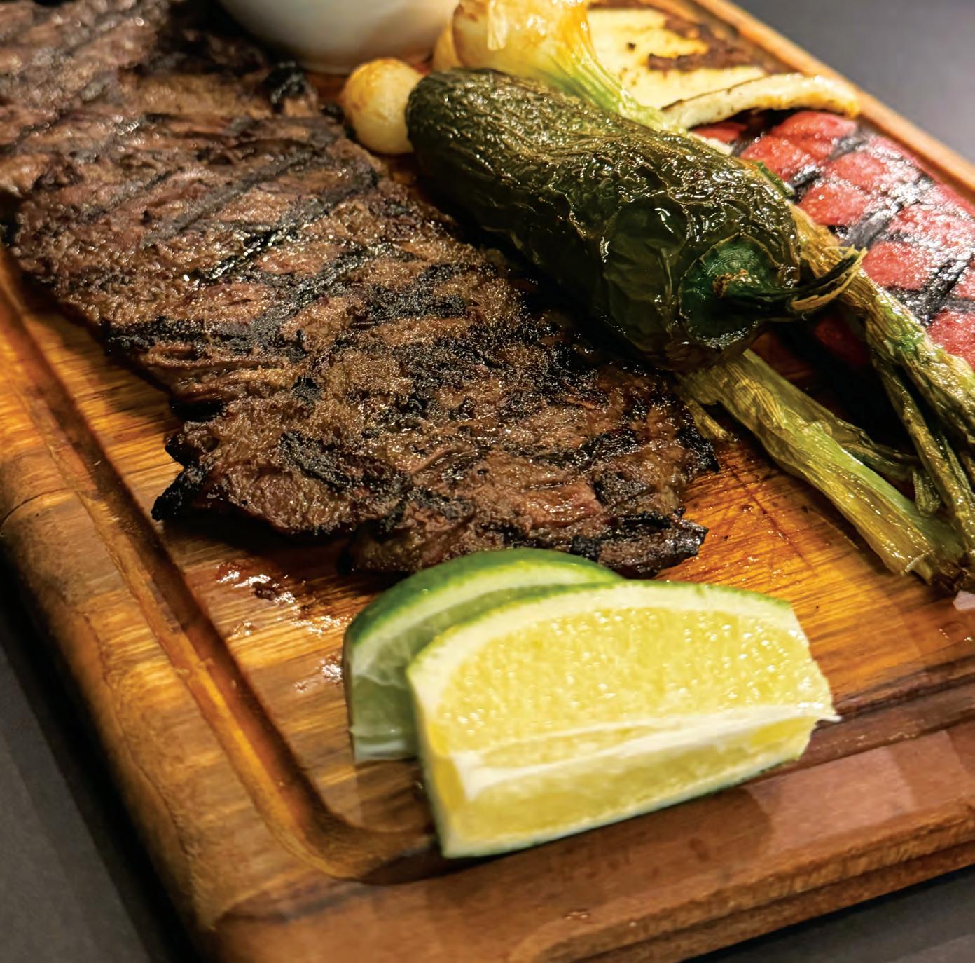 A tour of the kitchen showcases the staff curing and seasoning a new molcajete (mortar and pestle), a laborious process that involves grinding rice and salt to a fine powder, followed by spice grinding, before it’s used. Since the northeast region of Mexico is blessed with pastureland, the food is meat-focused, and most of it is grilled over a wood fire.