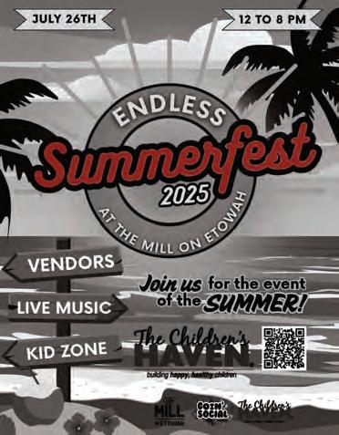 Visit The Mill on Etowah, one of the metro area’s hottest adaptive re-use developments located in the historic 120-yearold former Canton Cotton Mill on the banks of the Etowah River near downtown Canton. Discover Canton’s mill town history, visit Reformation Brewery and other restaurants, stroll through shops, and enjoy events on The Green.