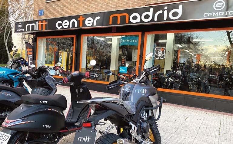 En un nuevo y gran espacio en dos alturas, MITT Center Madrid ofrece su amplia y variada gama de vehículos MITT con scooters, motos y quads, además de la oferta de la marca CFMoto, de la que comercializan las nuevas motos eléctricas y su espectacular familia de ATV’s.