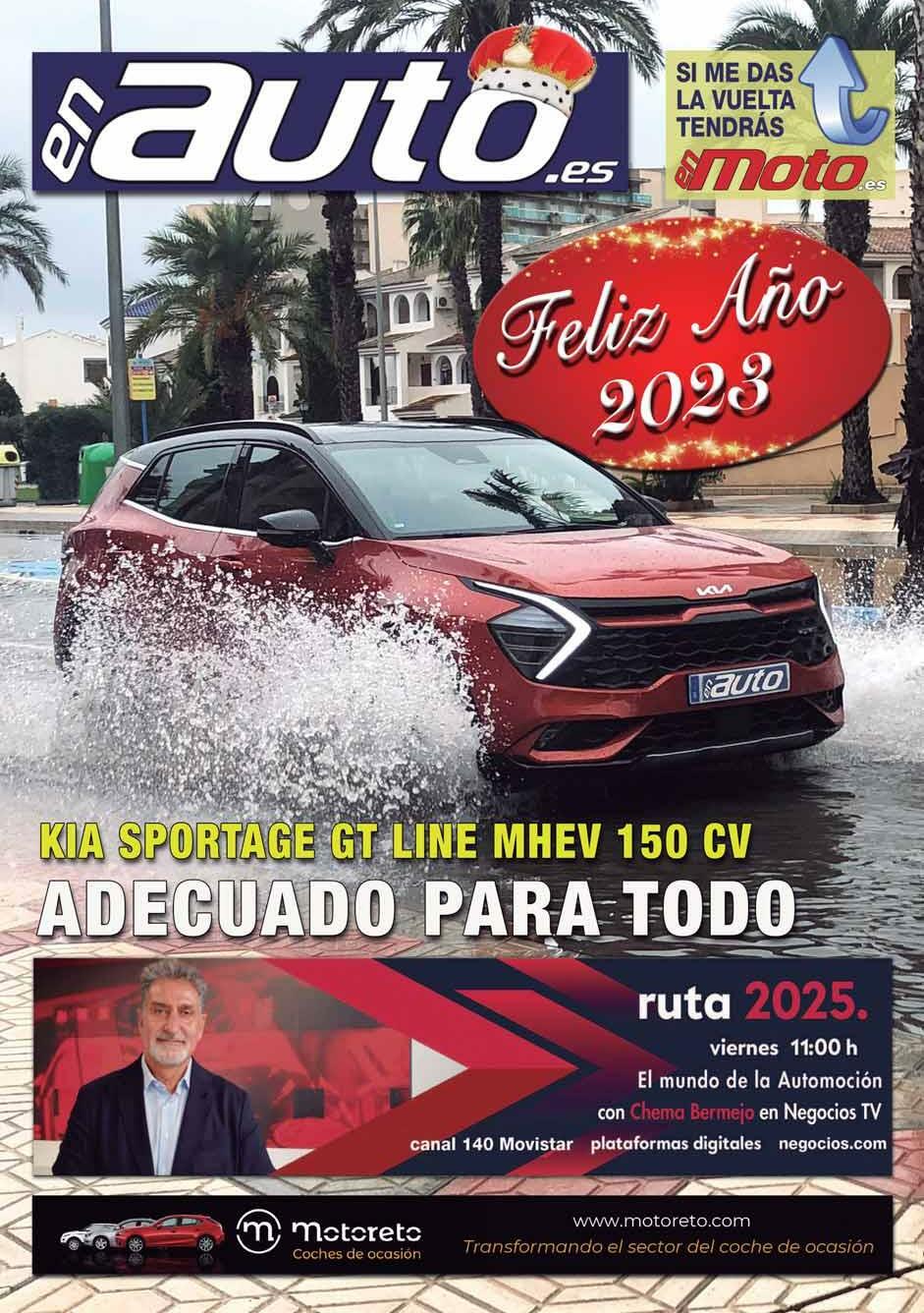 NUEVO! EDITORIAL: Se prohibe la reproducción total o parcial de textos o imágenes de esta publicación sin la autorización previa y por escrito de la editorial. La empresa editora no asume las opiniones de los artículos que aparecen firmados. DIRECCIÓN: C/ Lago Salado, 16 - 28017 MADRID - www.enmoto.es / www.enauto.es Editor/Director Chema Bermejo bermejo@enmoto.es Redacción Laura Bermejo Roberto B.L. Diseño Dto. EM Fotografía Jorge B.R. Jesús del Castillo Colaboradores Alicia Sornosa José Medina Lupe A. M. Fernando Rebollo Impresión Imedisa Depósito legal M-19154-2007 Administración Guadalupe Arias e-mail info@enmoto.es publi@enmoto.es Distribución R.E.M. ADMINISTRACIÓN / PUBLICIDAD Tel.: 670 27 63 28 - REDACCIÓN Tel.: 914 129 943 STAFF EN MOTO 2 Contacto Kia Sportage GT-Line MHEV 150 CV 3 Empresas Cetelem en colaboración con empresas del automóvil. Los entrevistados de 2022. Clásicos de Superslot, un regalo para todas las edades 4 Novedades Las nuevas bicicletas de Invicta Electric. Yamaha, también con bicicletas eléctricas dic22/ene23 3 SUMARIO >> VA DE ILUSIONES Noticias 14 25 aniversario del Observatorio de Cetelem. Aprobada en el Senado la reforma de la Ley del Deporte. Yadea inaugura su primera Flagship