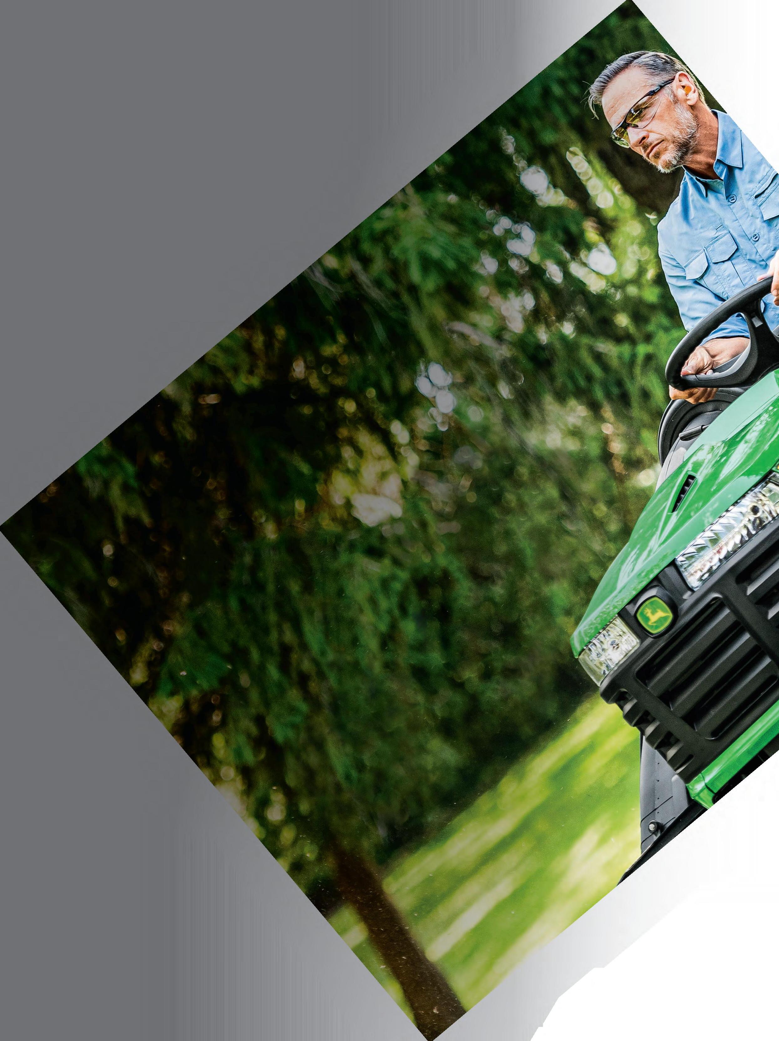 This literature has been compiled for worldwide circulation. Features, specifications, and attachments subject to change without notice. While general information, pictures, and descriptions are provided, some illustrations and text may include finance, credit, insurance, product options, and accessories NOT AVAILABLE in all regions. PLEASE CONTACT YOUR LOCAL DEALER FOR DETAILS. John Deere reserves the right to change specifications, design, and price of the products described in this literature without notice. John Deere, the leaping deer symbol, and green and yellow trade dress are trademarks of Deere & Company.