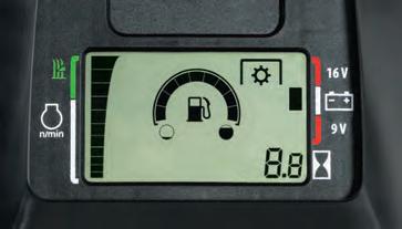 Easy-to-read display. Displays engine speed and target zone for the best cut quality.