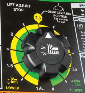 Exact adjust deck leveling system. This exclusive feature allows you to conveniently level the deck from just below the seat.