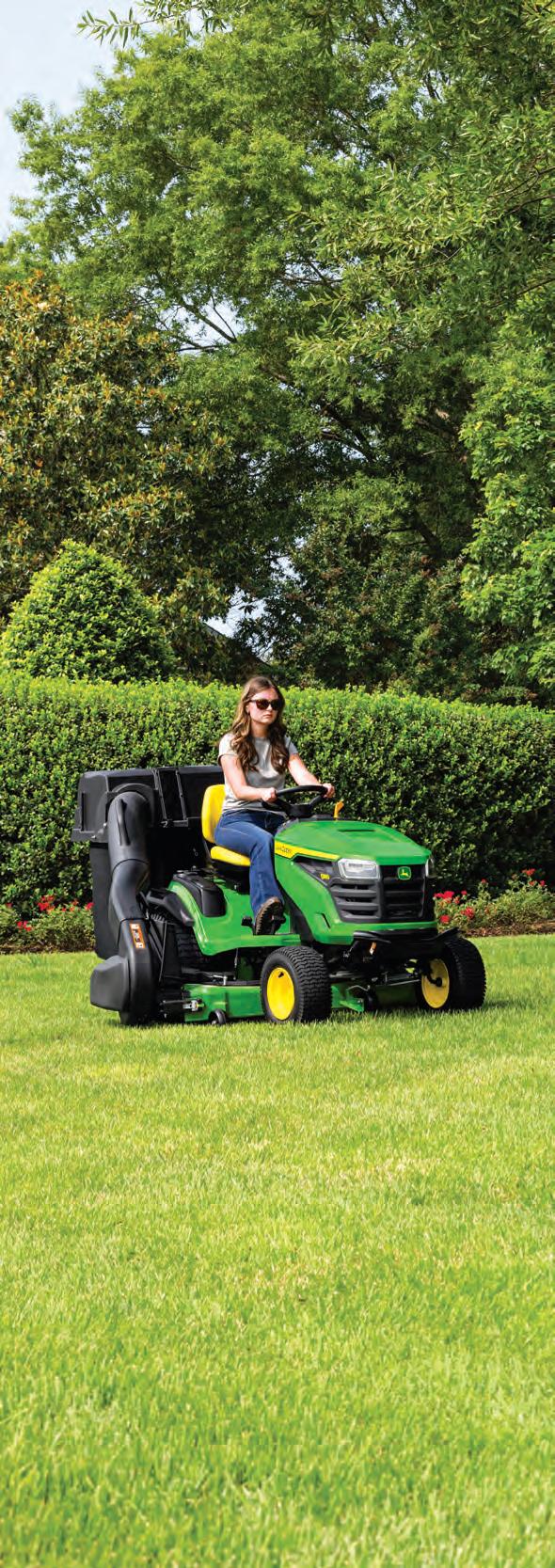 Assembled in Greeneville, Tennessee, the 100 Series Lawn Tractors make up our affordable, comfortable, easyto-use line-up. Loaded with features that keep your lawn looking sharp, handle snow removal in the winter, and help you take care of loads of other projects around your property. The result? Your property maintenance to-do list is done right the first time so you can lean back, smile, and take the credit.