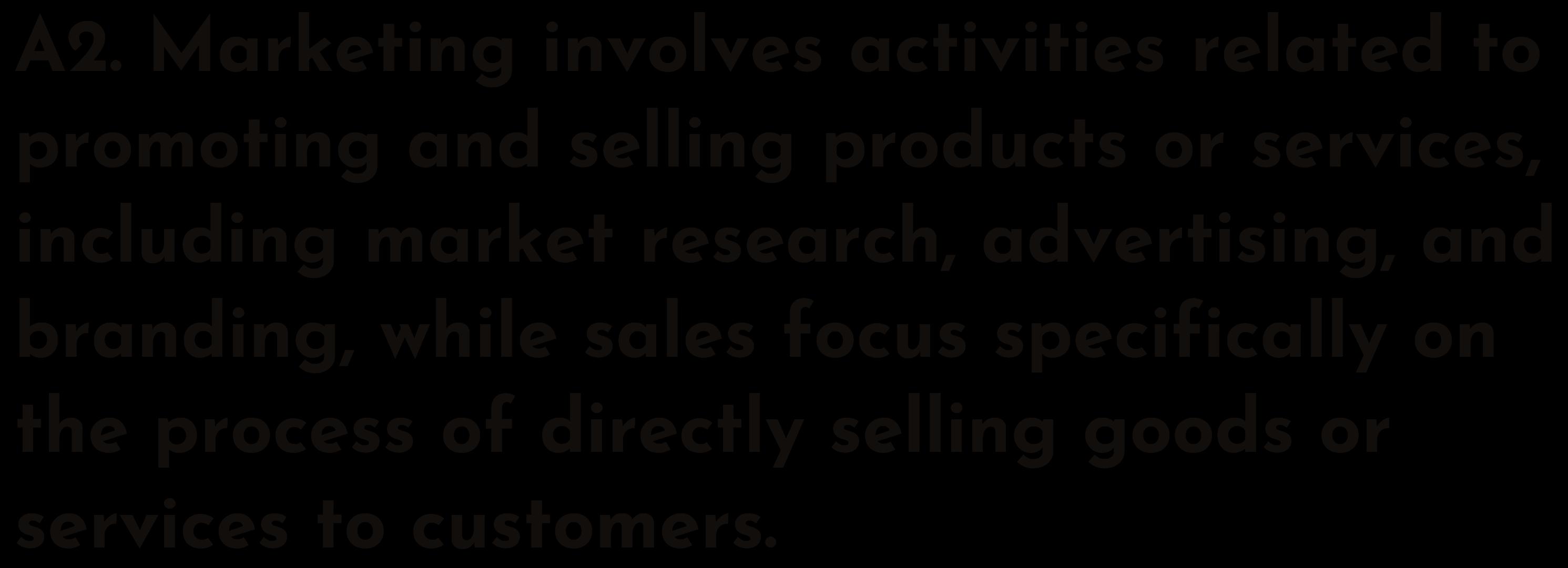 Q2. What is the difference Q2. What is the difference between Marketing and Sales? between Marketing and Sales?