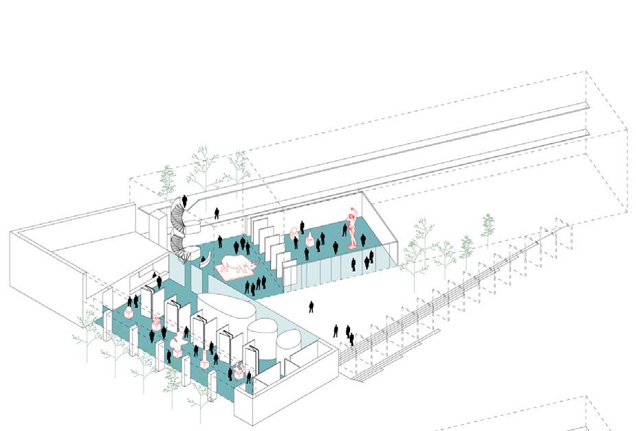 site display area” with room for a big model of the archeological site and multimedia display rooms without natural light. All levels of the exhibition space are connected visually to offer a complete experience of the history of the sunken treasure.