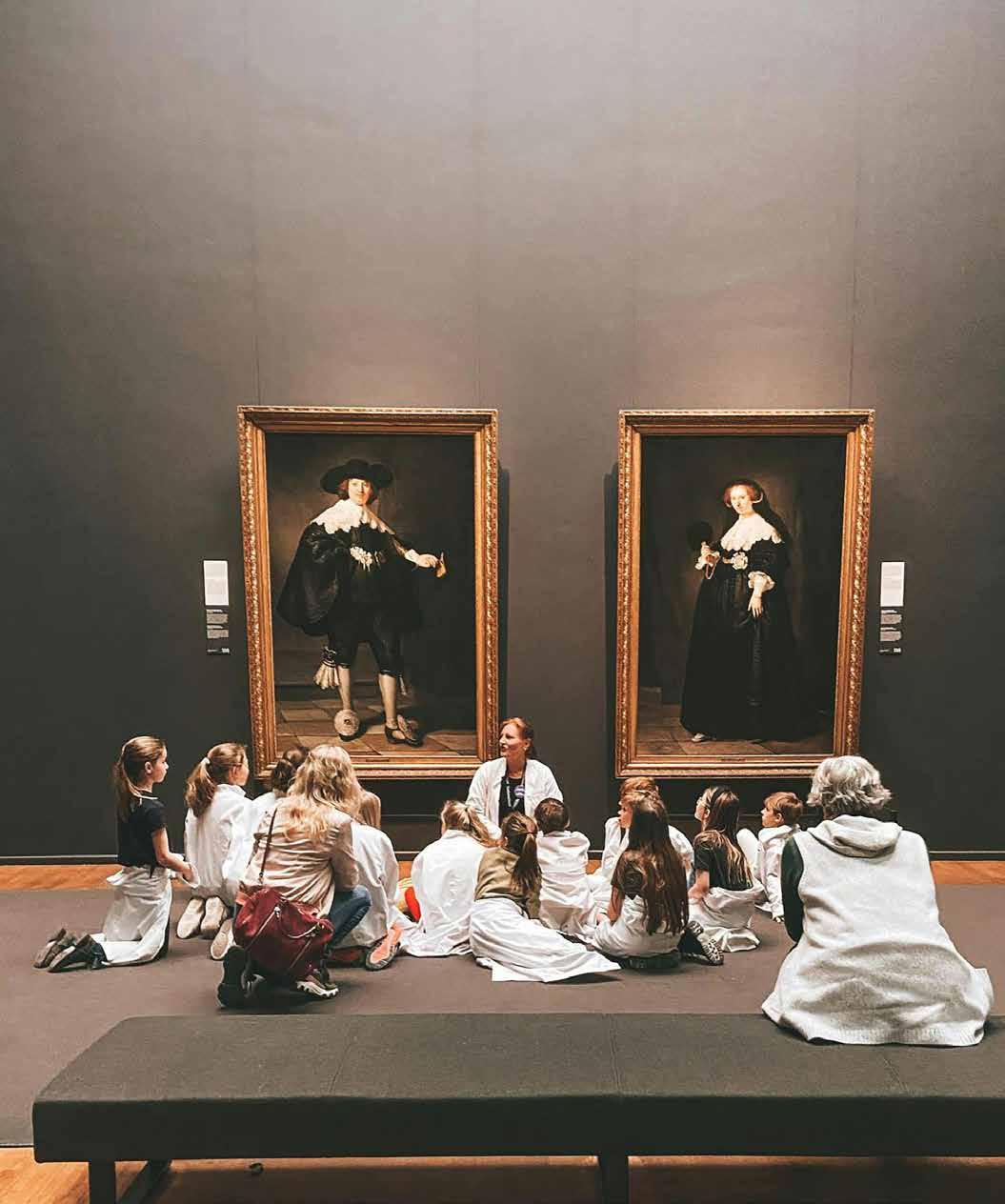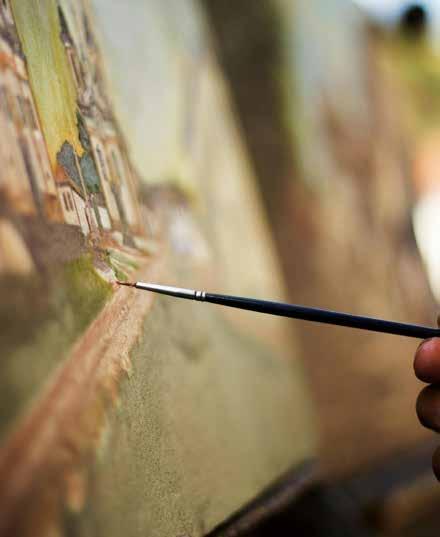 través de ella; por ello, se buscó que los más pequeños reconocieran características y temáticas en las tablas para luego tomarlas como referente en sus propios trabajos de arte. Los más jóvenes (de 13 a 15 años) reflexionaban sobre el arte en sí, pero también lo contextualizaron en su realidad y visualizaron cómo se proyectarían en el futuro, fuera del entorno escolar.