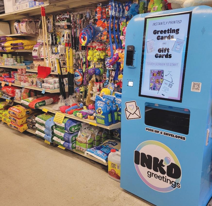 Ink’d offers greeting card kiosks of 8 square feet, which can be added to a drugstore—or other retail location—and which offer a variety of cards from birthday to sympathy and thank yous. The company currently has 16 kiosks operating, including in two pharmacies.