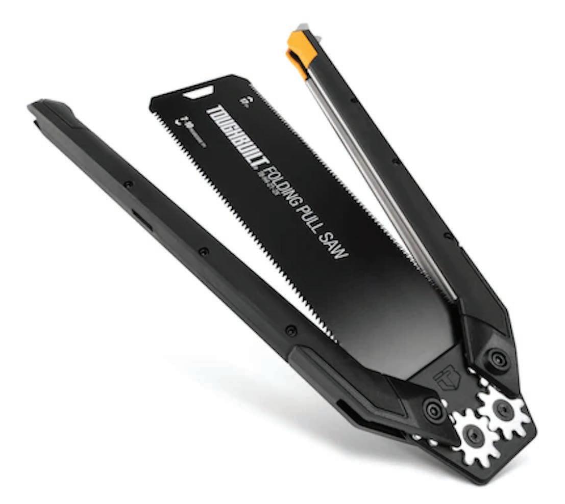 Into that market comes what Toughbuilt describes as the first ever safe-folding pull saw. It features a folding dual-edged ryoba-style pull saw. The integrated folding mechanism allows the blade to store inside the saw’s handle, providing the user with a full-length saw that can be safely stored or transported in a compact form.