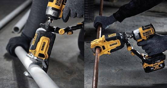 Designed to improve user productivity, the system is rolling out two new attachments: A copper pipe cutter attachment (DWACPRIR); and a PVC/PEX pipe cutter attachment (DWAPVCIR) Both shown here.