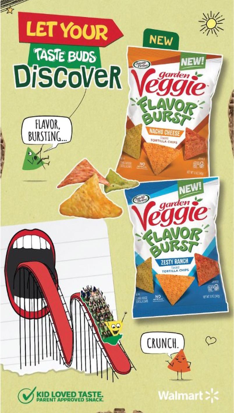 Hain Celestial Group had its line of Garden Veggie Flavor Burst tortilla chips launch in February with an omnichannel campaign of instore displays and an exclusive package at Walmart.