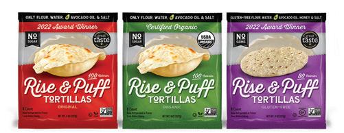 In keeping with its mission to clean up the flour tortilla category and provide families with better food choices, Rise & Puff has made its debut after three years of developing an authentic healthier tortilla. The product line features tortillas that puff, thanks to the brand’s decision to remove eight of the 12 ingredients found in processed supermarket tortillas. Rise & Puff offers three varieties, Original, Certified Organic and Gluten-Free, with Original containing just four premium ingredients: non-GMO wheat flour, pure avocado oil, sea salt and filtered pure water. Taking only 60 seconds to cook, the tortillas have less sodium (170 milligrams versus 420 milligrams), fewer calories (100 versus 140), and no sugar, compared with most tortillas on the market today, according to the brand, which is looking to disrupt the tortilla category with more products. An 8-ounce airtight resealable package of eight tortillas that lasts 40 days in the fridge retails for a suggested price range of $5.99-$8.99. https://riseandpuff.com/