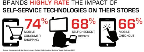 The growing interest in self-checkout is clear. Retailers must adapt by delivering self-service experiences that give shoppers more control, resulting in less time spent in the checkout line. Customers want retailers to continue implementing selfservice options with technology that makes shopping easier, more informative, and more enjoyable.