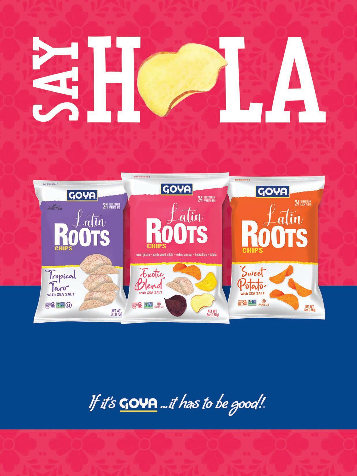 Contact your GOYA representative or email salesinfo@goya.com | GoyaTrade.com * Source: Mintel (2020). Plant-Based Proteins US – May 2020 ©2022 Goya Foods, Inc. Plant based foods are hotter than ever*. That’s why now is the perfect time to stock NEW GOYA® Latin Roots plant-based chips! They’re made from delicious root vegetables to deliver an unforgettable taste experience that will keep your shoppers coming back for more. Crafted with the same authenticity that only comes from the Latin food brand, GOYA® Latin Roots are perfect for shoppers looking for a unique snacking experience. TO OUR DELICIOUS LATIN ROOT CHIPS