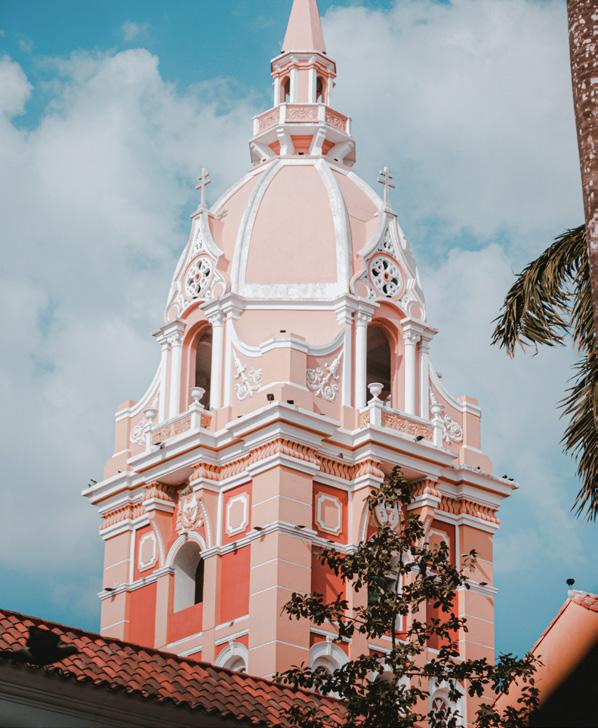 Back in Cartagena, I wind my way through the Old Town in search of hidden treasures. Librería Los Mártires sells first editions of novelist Gabriel García Márquez at the base of the famous clock tower. There are playful, modern finds at El Centro Artesano, an organization that works with Indigenous artisans, while at Artesanías de Colombia, I pick up two mustardyellow piggy banks carved out of totumo, an inedible fruit with a hard rind. St. Dom carries higher-end Colombian designers who do chic updates on classic accessories.