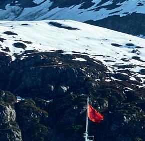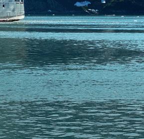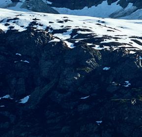 [ par — by Tim Johnson ]L’HÉLICOPTÈRE DÉCOLLE verticalement au-dessus du fjord et les pales tournent bruyamment au-dessus de ma tête. Tout ce que je vois en dessous est indigo et émeraude, gris et blanc. L’eau froide et claire contraste avec les rives verdoyantes et les sommets enneigés.