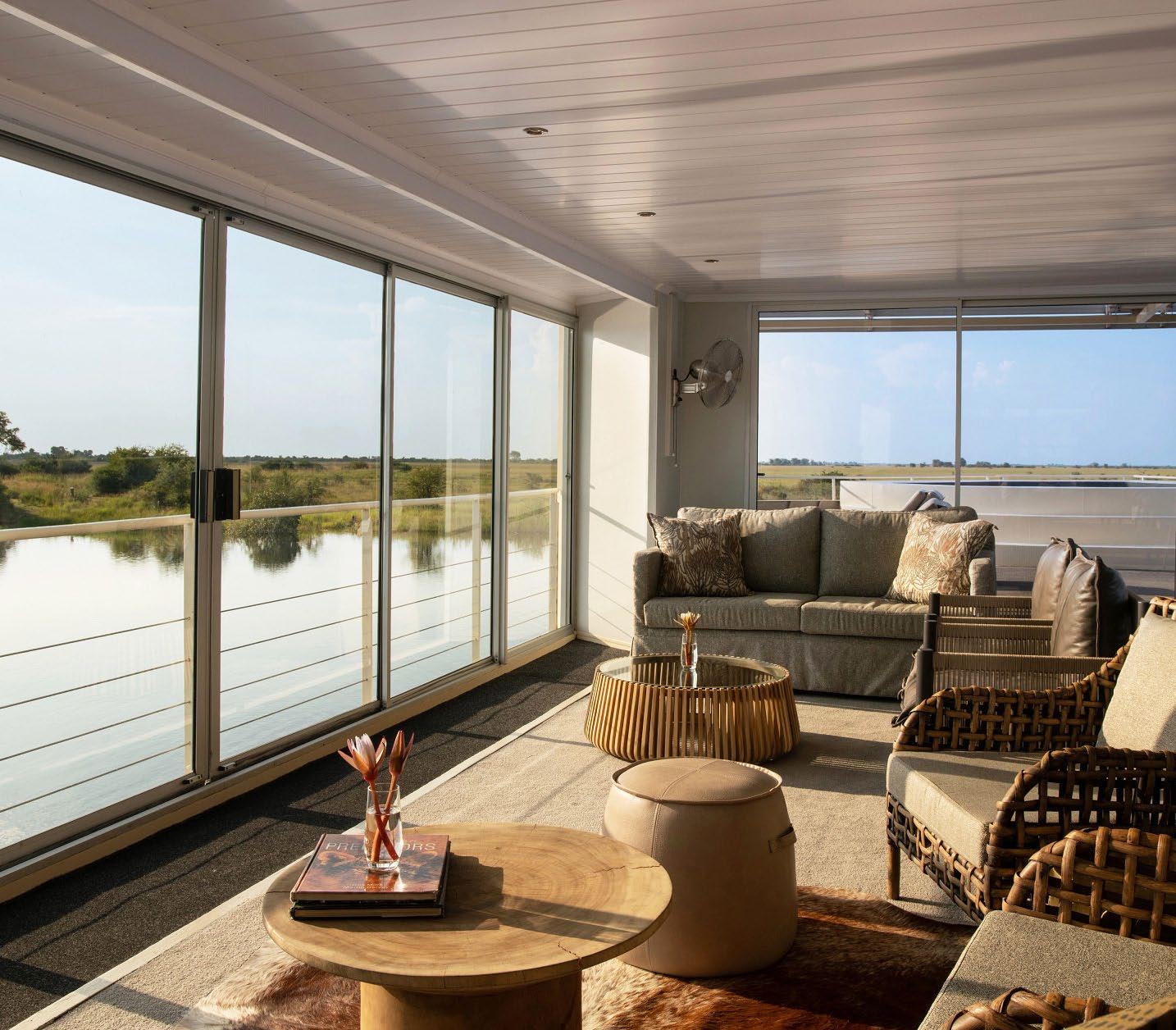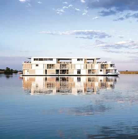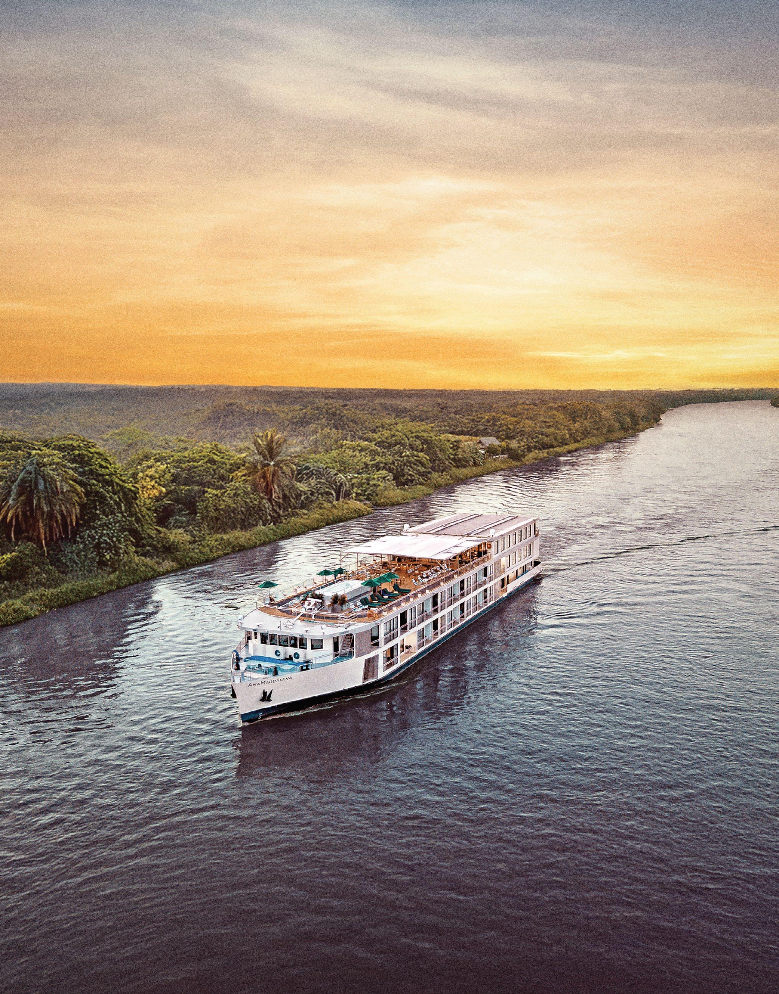 The Chobe River traces the border between Namibia and Botswana before joining the Zambezi River. A river safari on AmaWaterways’ 28-guest Zambezi Queen brings up-close views of wildlife on the water, including the large elephant population in Chobe National Park.