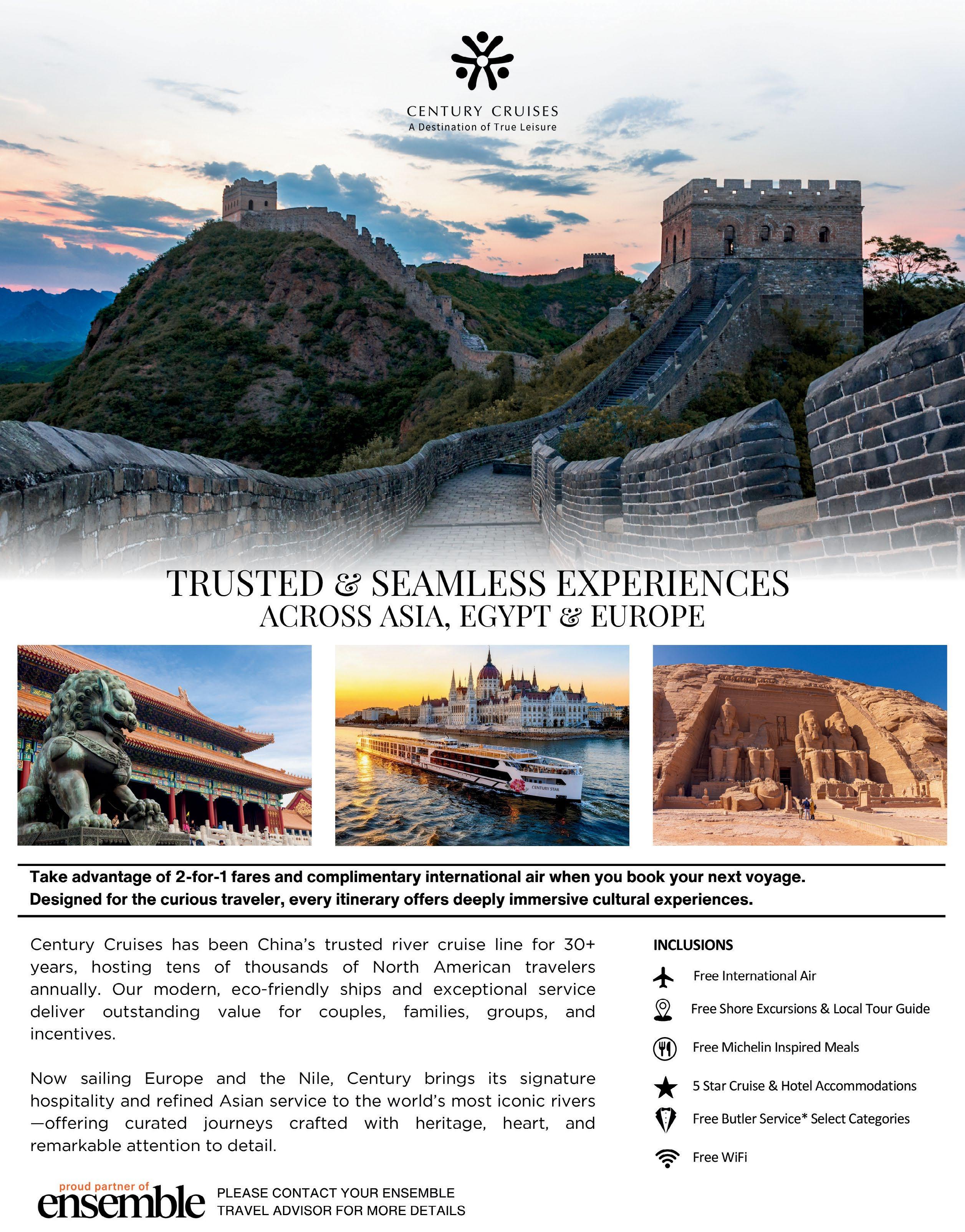 Upgrade your travels with Ensemble, a leading North American organization of top-tier travel agencies. Enjoy access to exclusive perks, exceptional amenities and extraordinary experiences, on land and at sea.