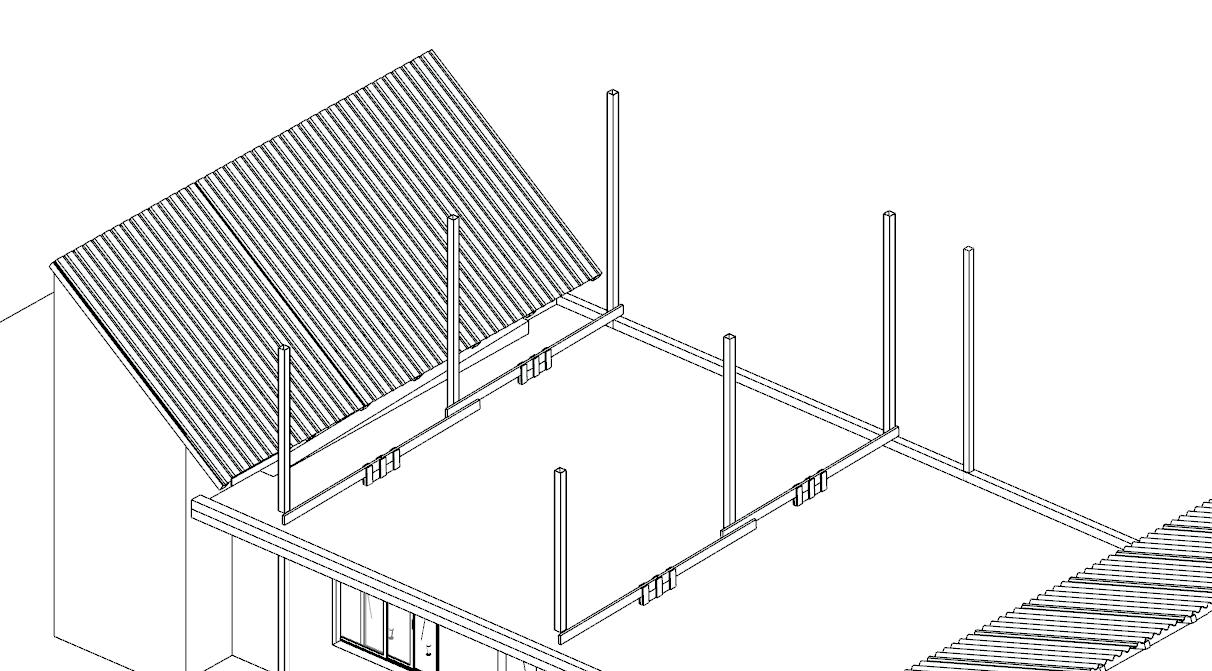 Preparación y Marcado Con la viga aún en el suelo, marcar los puntos exactos donde descansará sobre las columnas de metal. Despúes pasar la piola de columna a columna y marcar la parte inferior de la viga de acuerdo a la inclinación