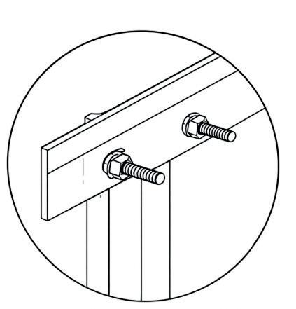 Insertar inmediatamente la varilla roscada en el agujero y poner la rodela de presión, la rodela plana y las tuercas sin apretar del todo