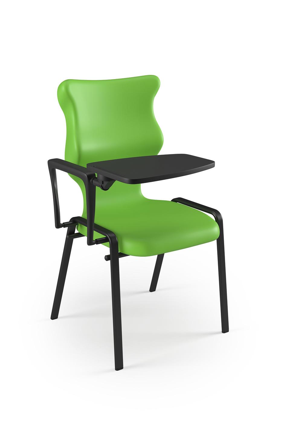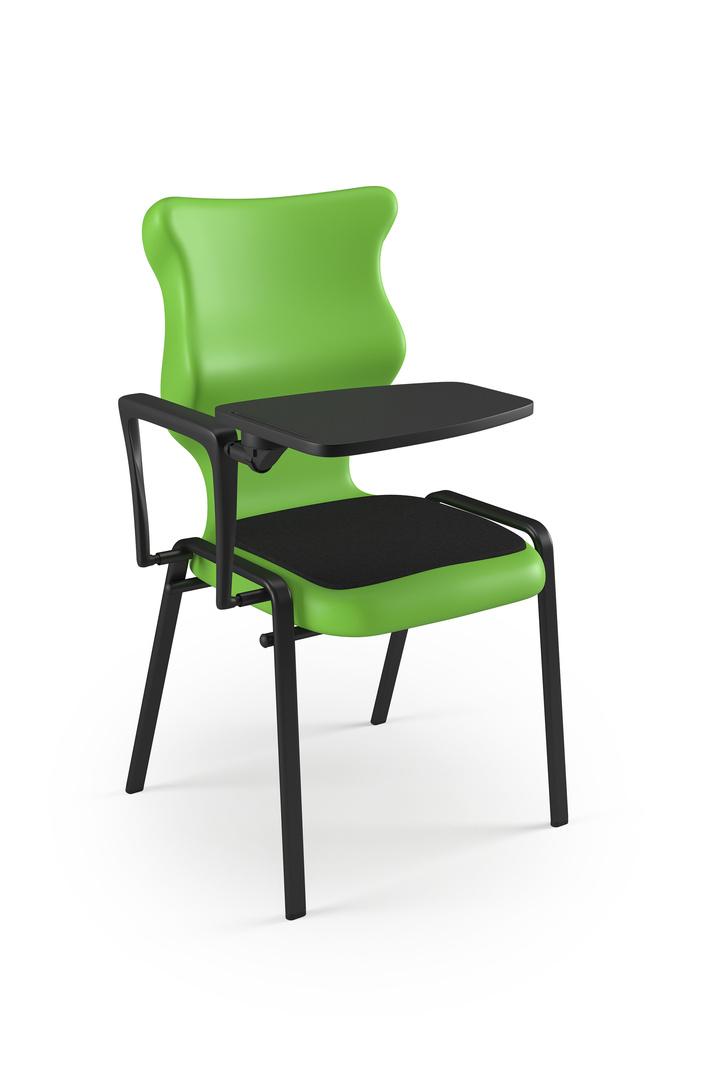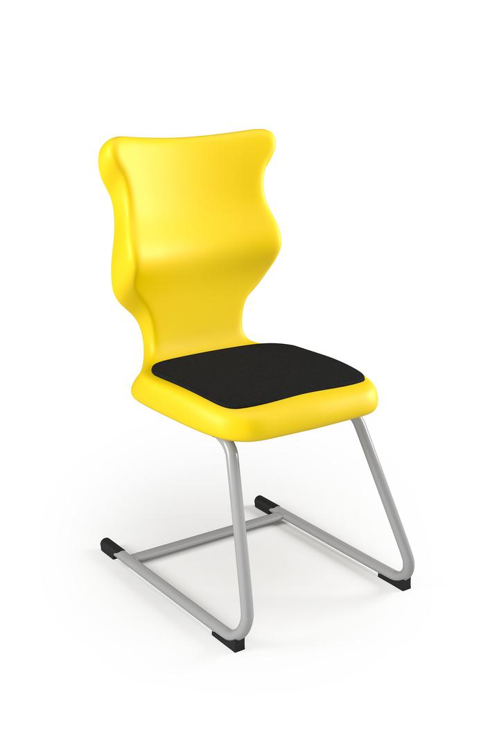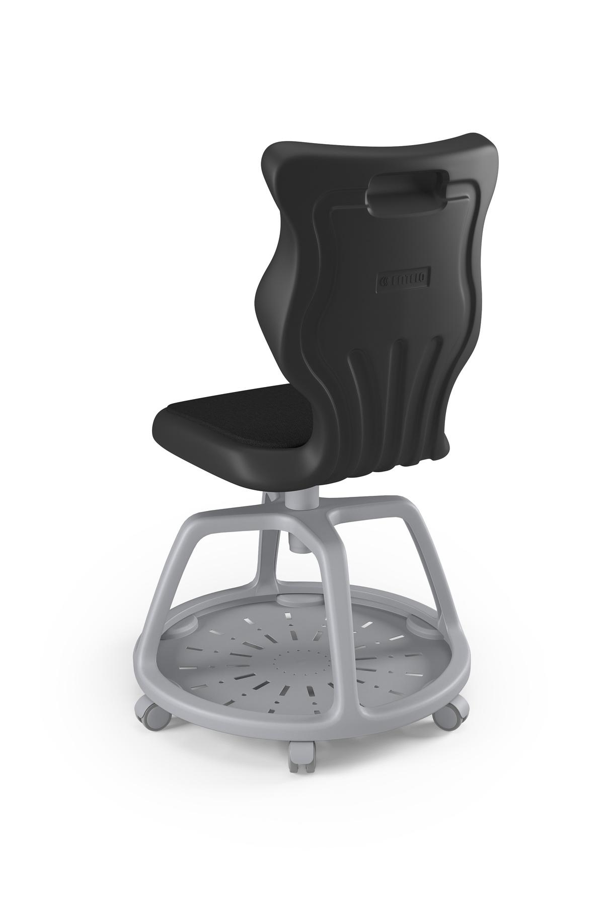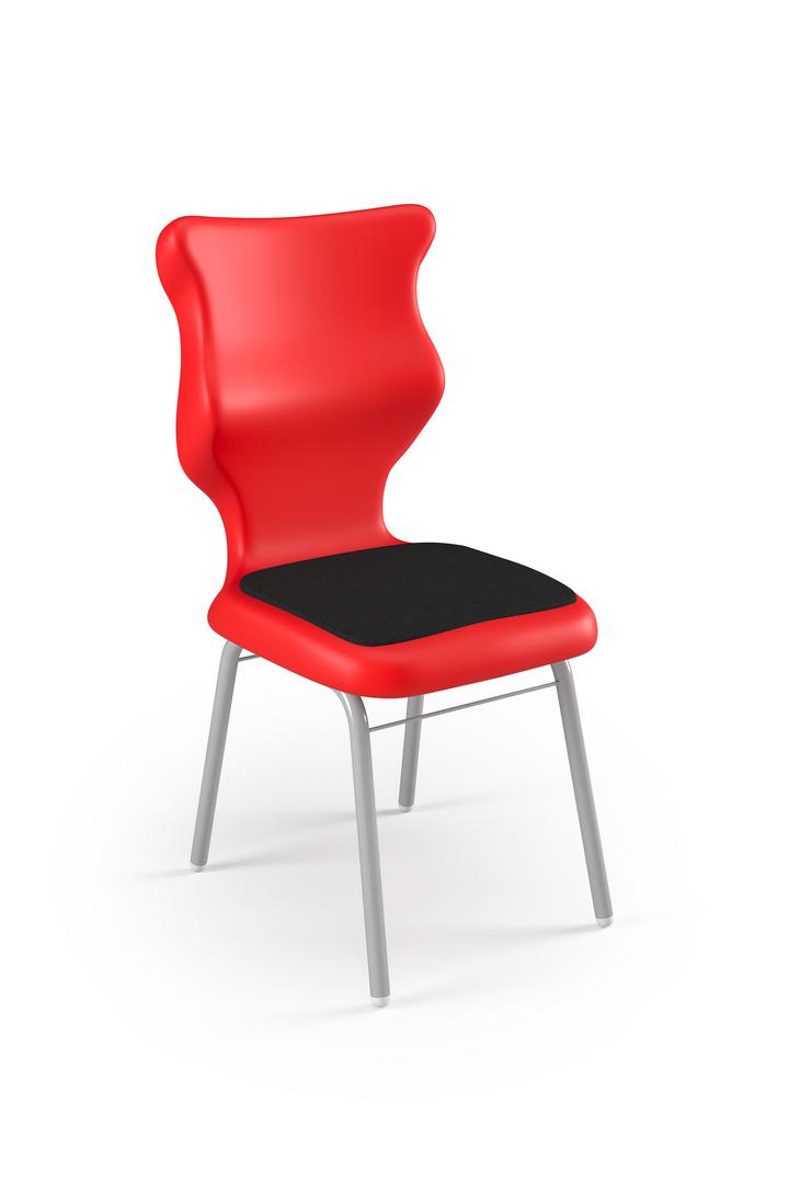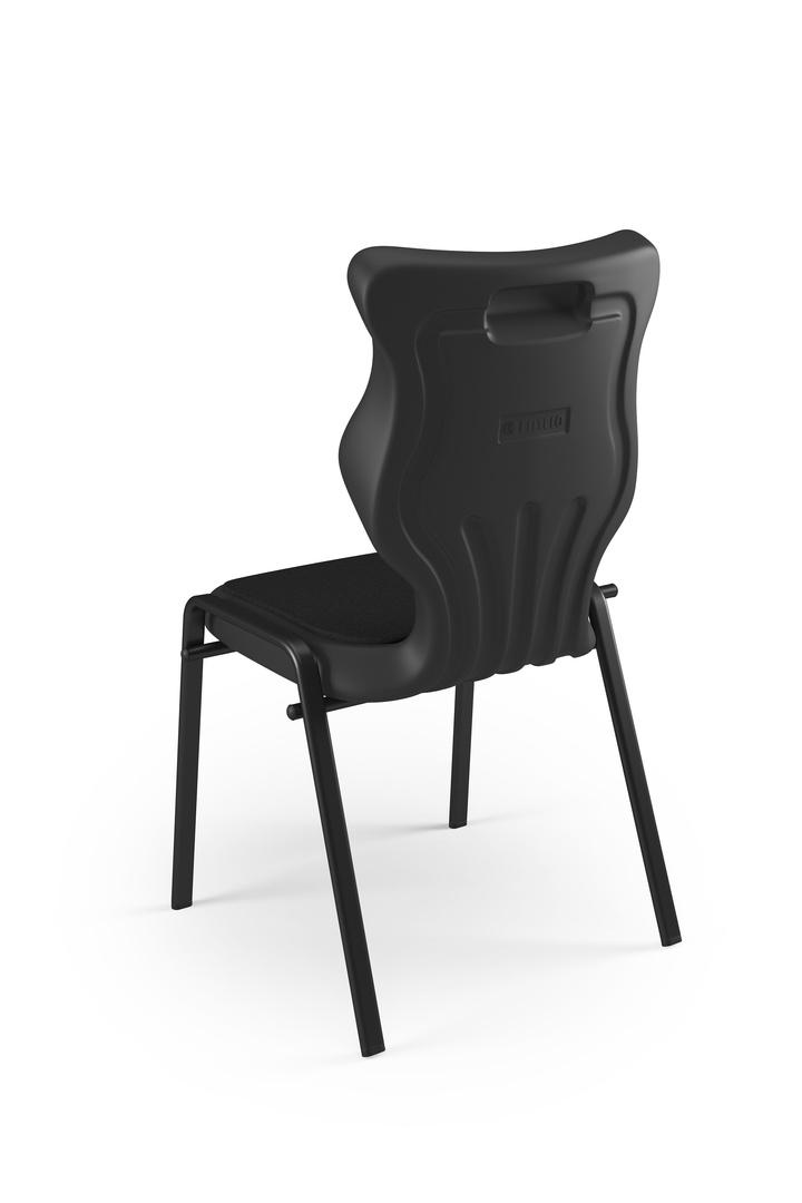 Ponadto konstrukcja krzesła oprócz parametrów ergonomicznych posiada opływowe krawędzie dla bezpiecznego użytkowania przez dzieci Krzesło Entelo dopasowane jest do wzrostu ucznia: tym samym wklęsło-wypukła forma oparcia odpowiednio stabilizuje odcinki kręgosłupa