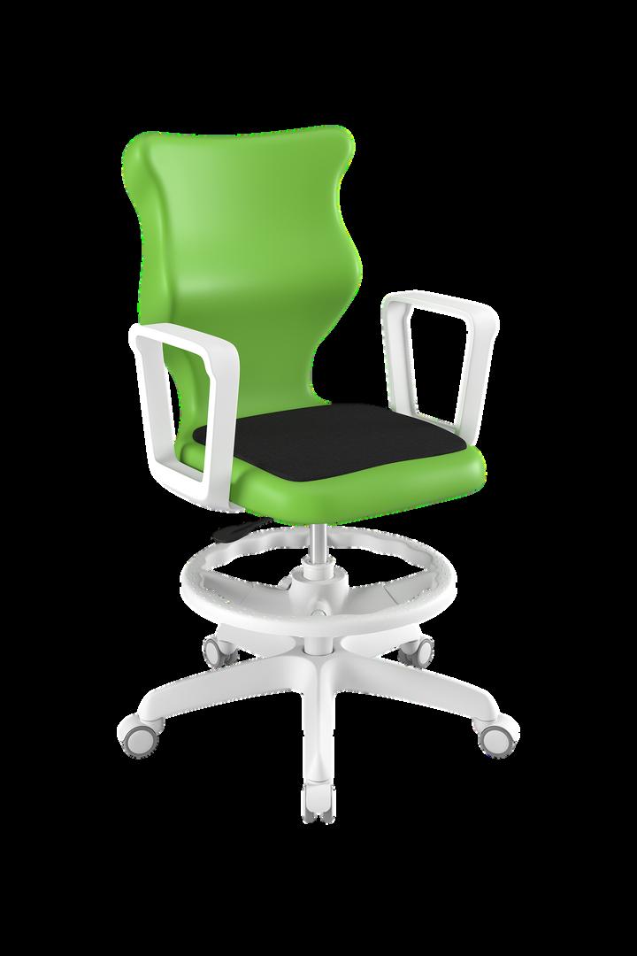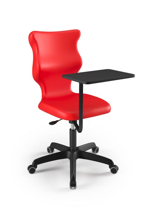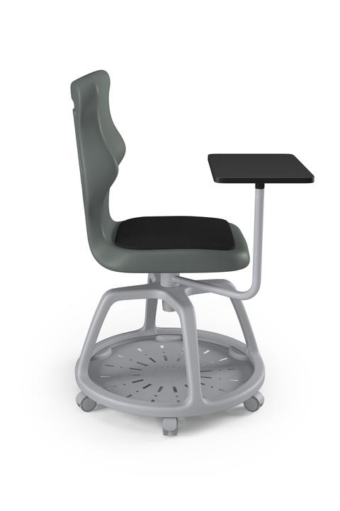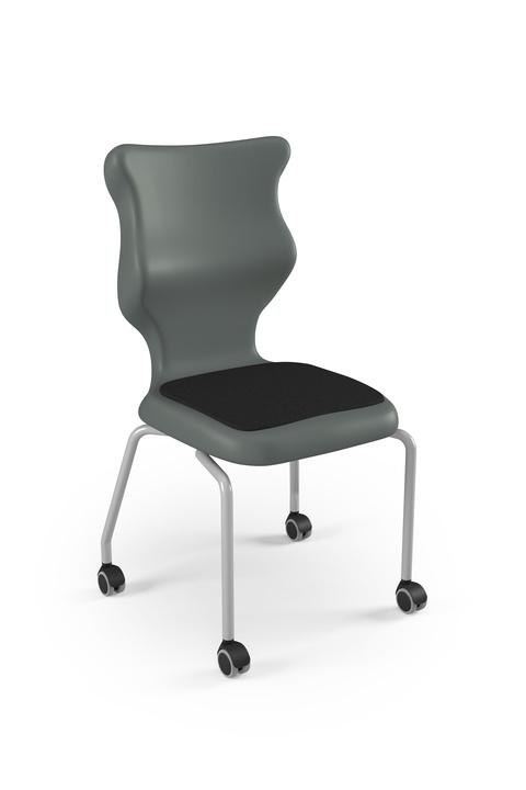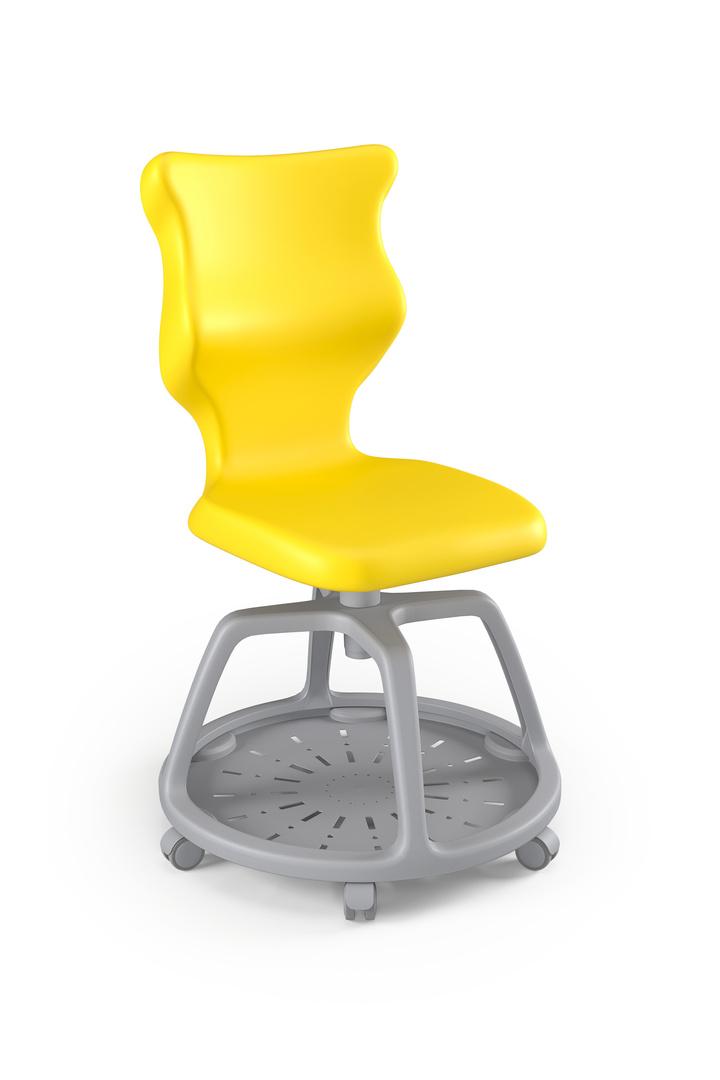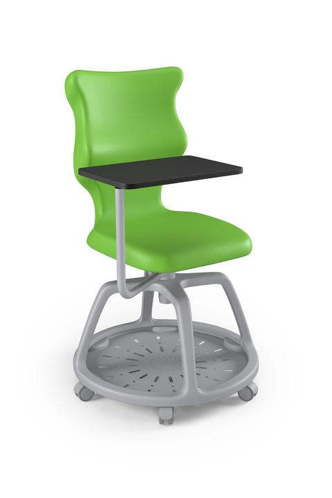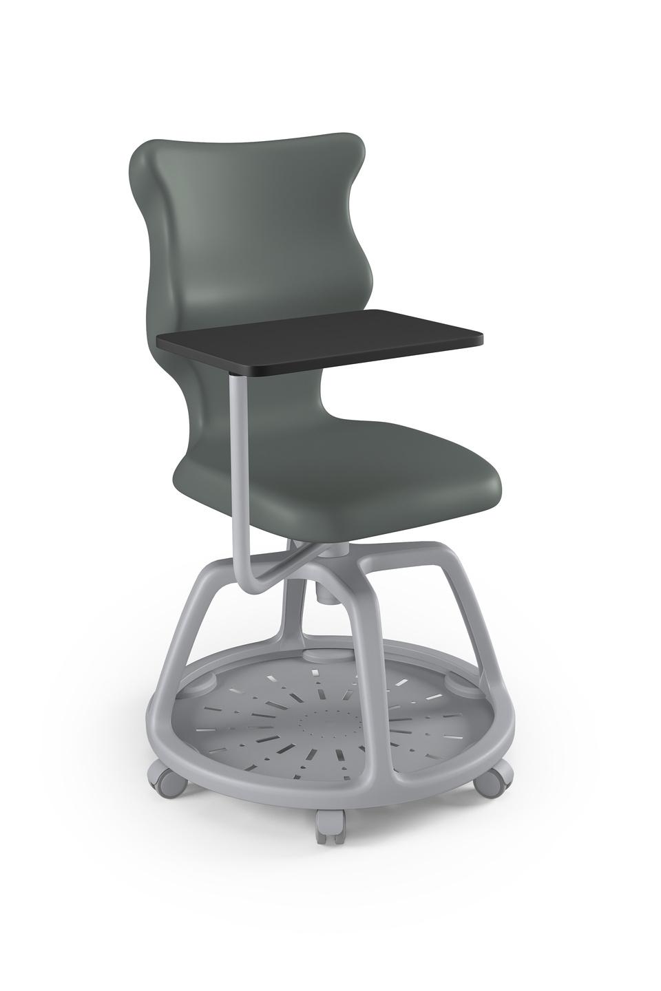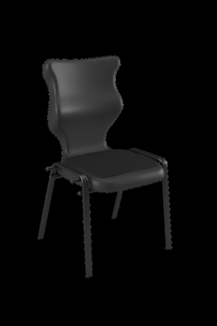 Ponadto konstrukcja krzesła oprócz parametrów ergonomicznych posiada opływowe krawędzie dla bezpiecznego użytkowania przez dzieci Krzesło Entelo dopasowane jest do wzrostu ucznia: tym samym wklęsło-wypukła forma oparcia odpowiednio stabilizuje odcinki kręgosłupa